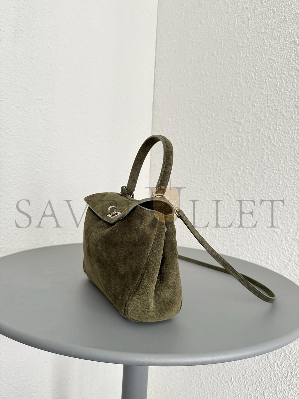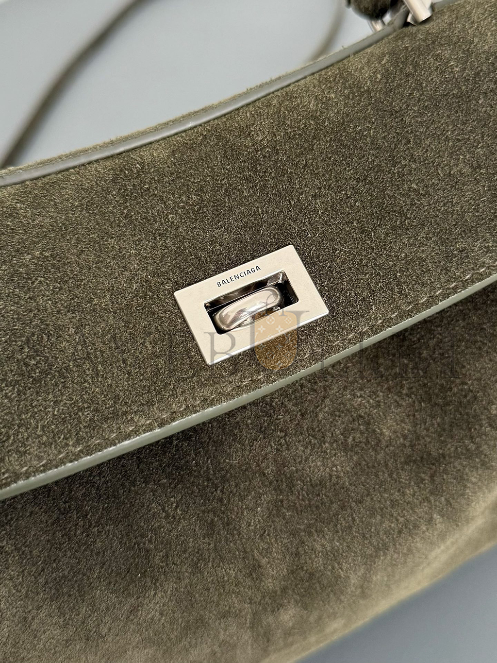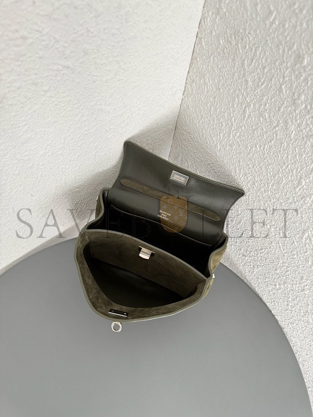 BALENCIAGA WOMEN'S RODEO HANDBAG MINI IN SUEDE KHAKI 7954562AA3V1000 (22.8*9.9*8.3cm)