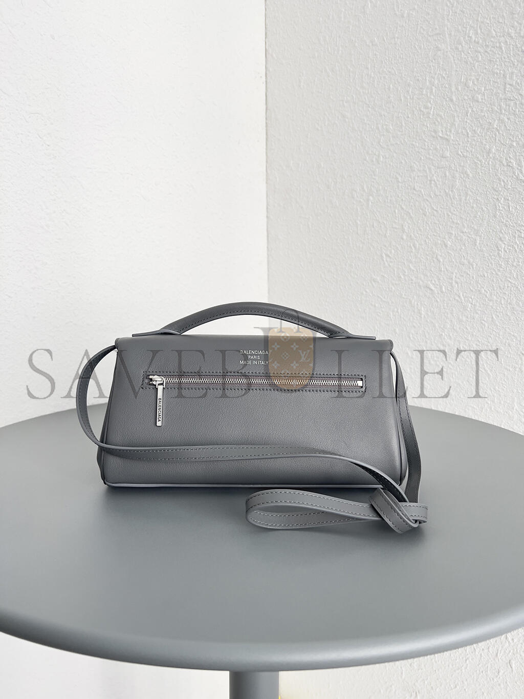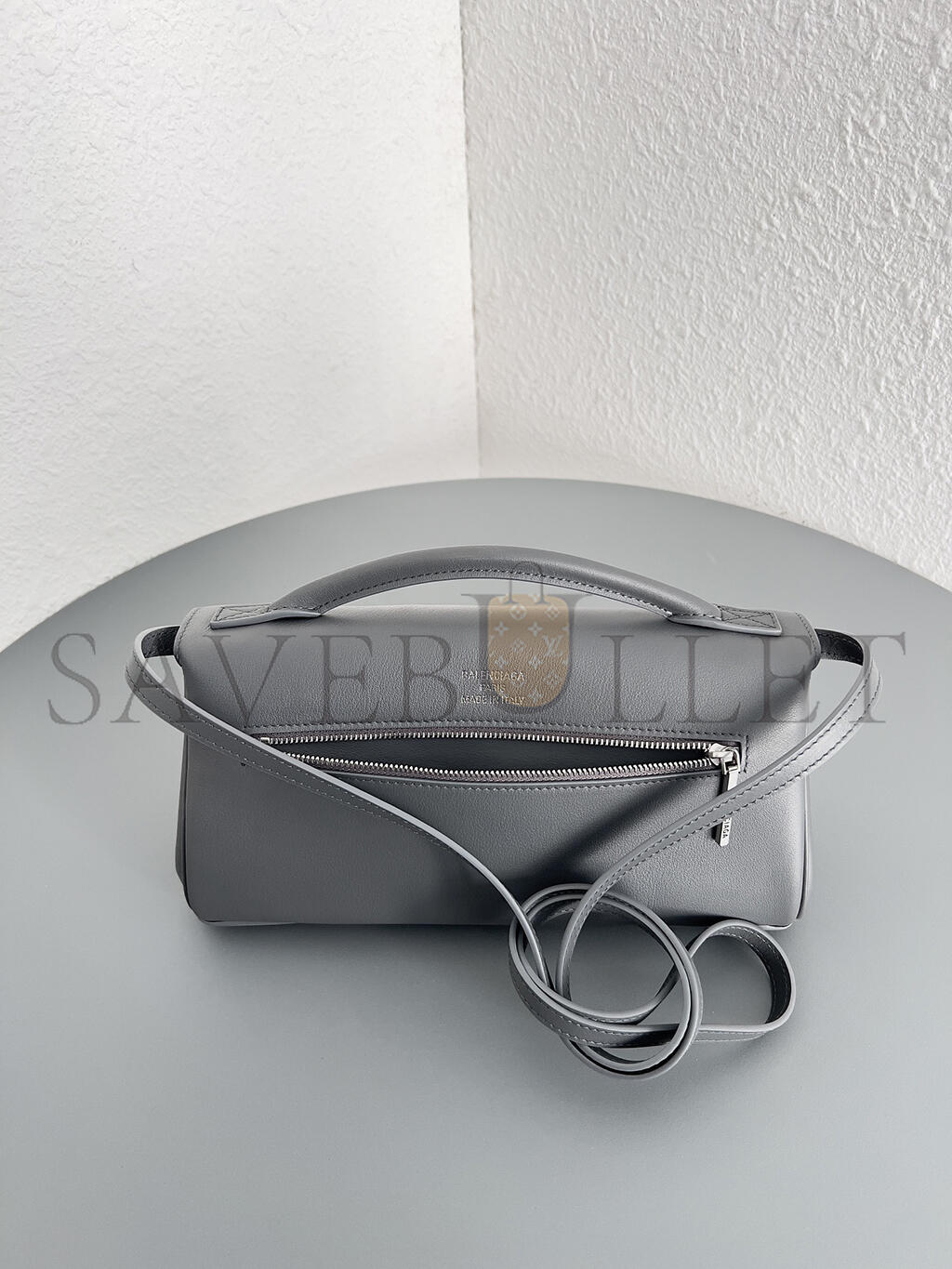 BALENCIAGA WOMEN'S BEL AIR CLUTCH ON STRAP SMALL IN CLOUD GREY 8349432ABAW1142 (26.9*13.9*5.3cm)
