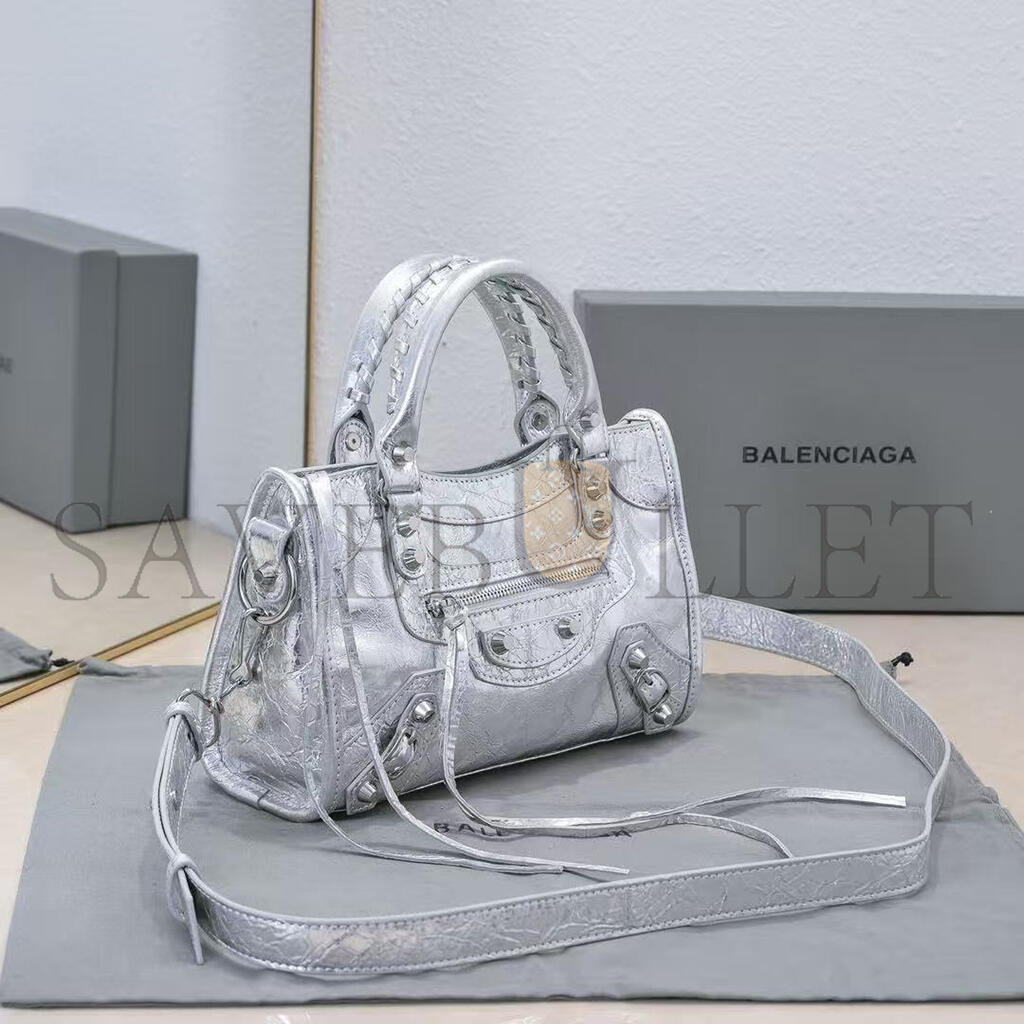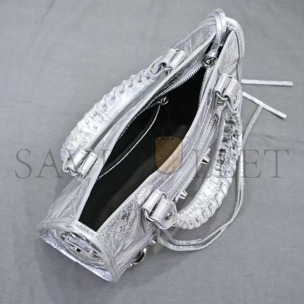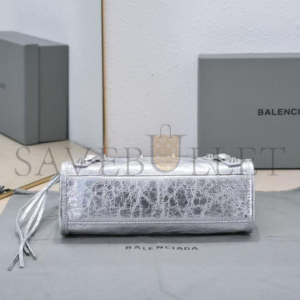 BALENCIAGA WOMEN'S LE CITY BAG MINI IN SILVER 8063952AA9R8122 (24*16*6.5cm)