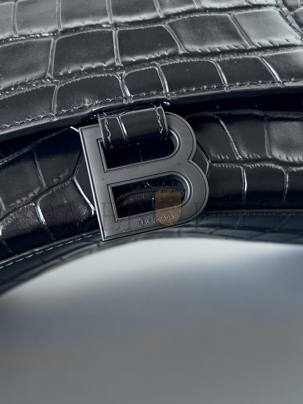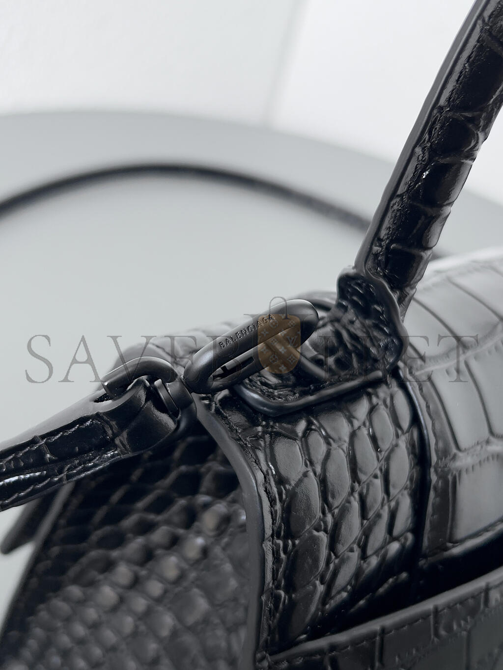 BALENCIAGA GREY HOURGLASS S CROCODILE-EFFECT LEATHER BAG MATCHESFASHION US (22.5*14*10cm)