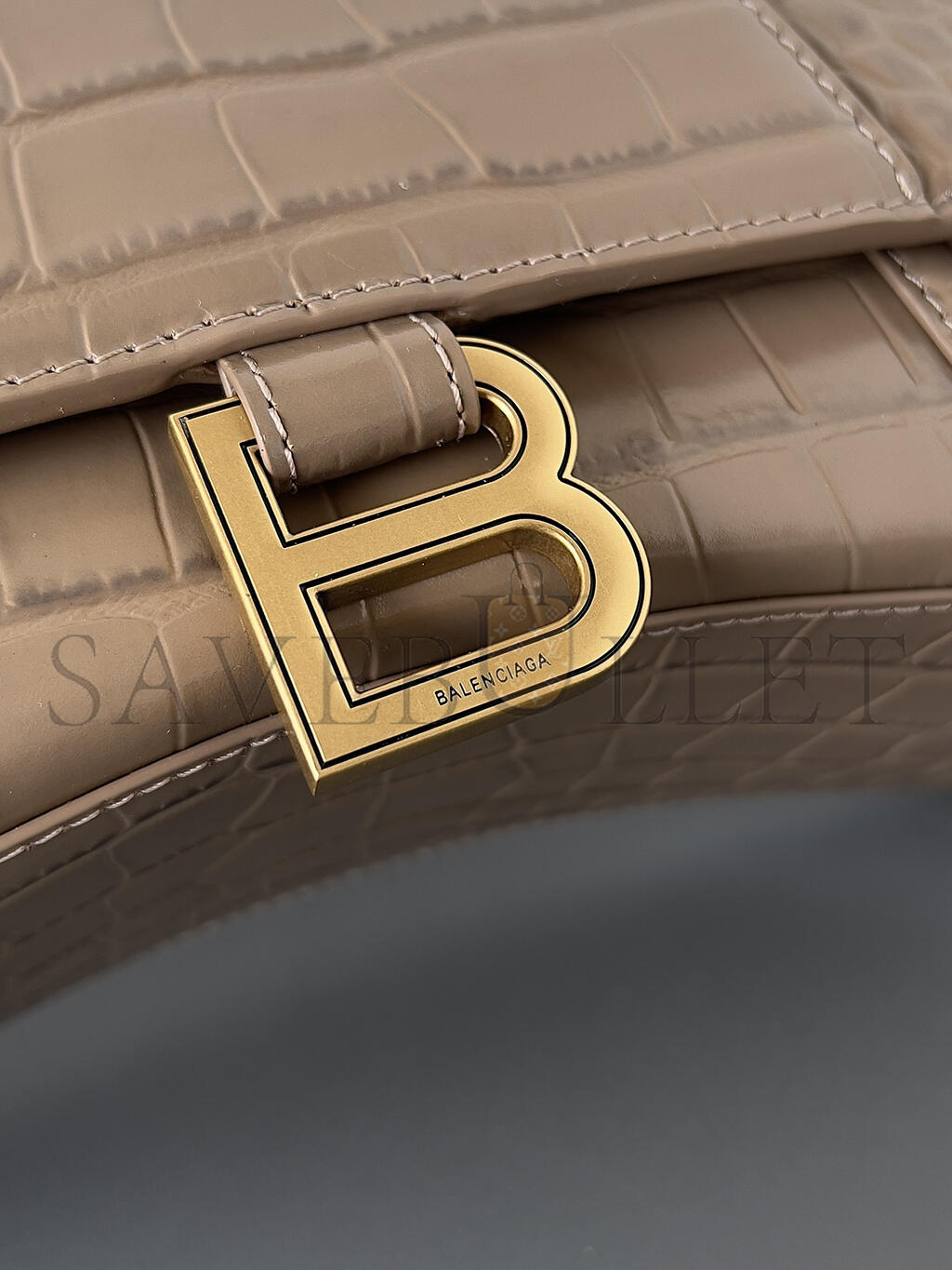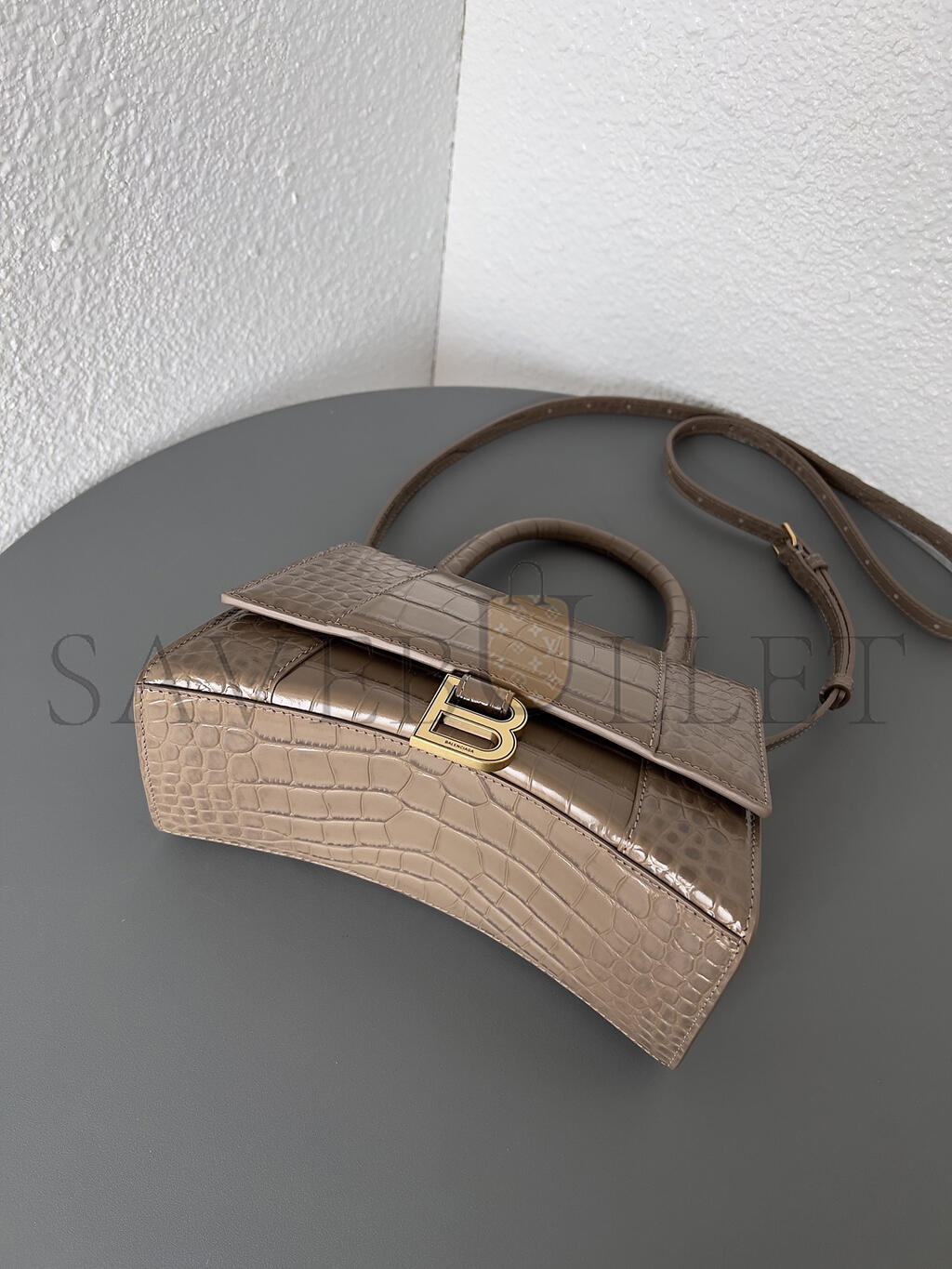 BALENCIAGA GREY HOURGLASS S CROCODILE-EFFECT LEATHER BAG MATCHESFASHION US (22.5*14*10cm)