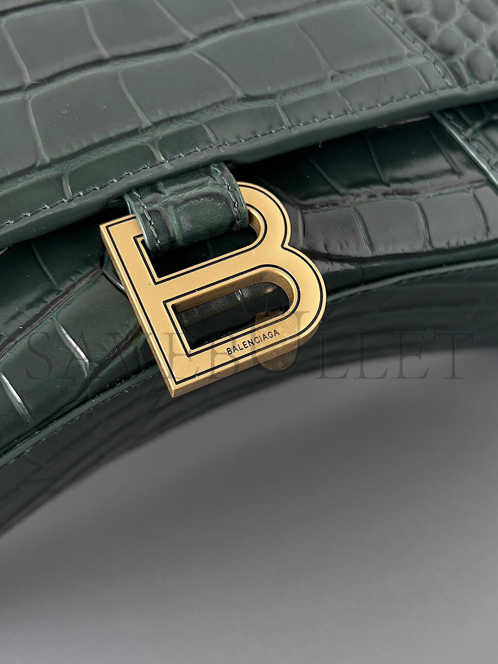 BALENCIAGA WOMEN'S HOURGLASS HANDBAG SMALL IN DARK GREEN 5935461LRGM3011 (22.9*15*9.9cm)