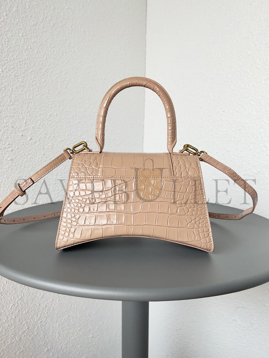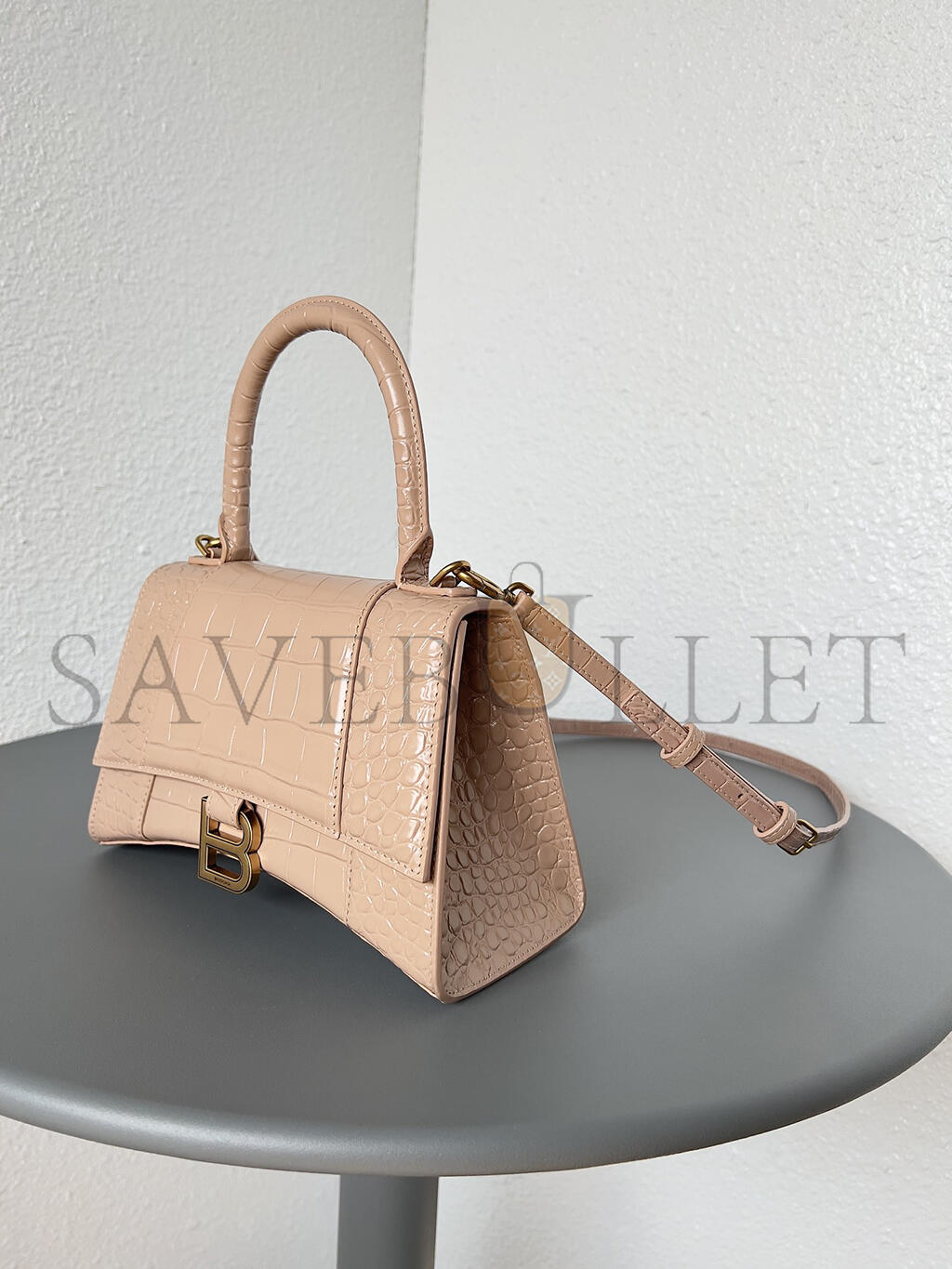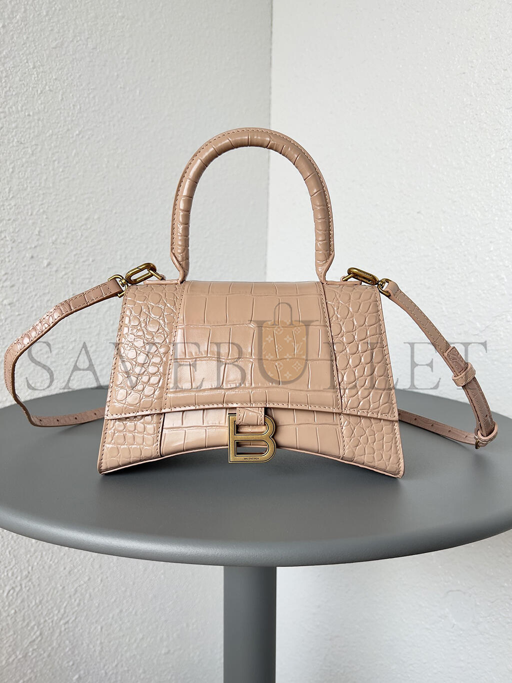 BALENCIAGA WOMEN'S HOURGLASS HANDBAG SMALL IN NUDE 5935461LR6Y6310 (22.9*15*9.9cm)