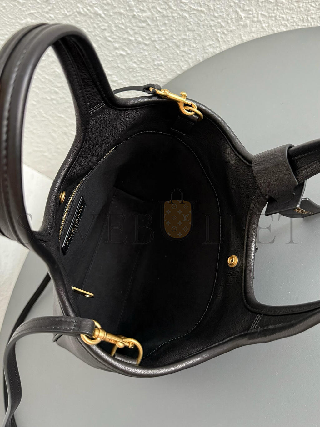 Louis Vuitton unveils the Bella bucket bag in Mahina calf leather with its perforated Monogram pattern. The bag’s small size and the attached round co..
