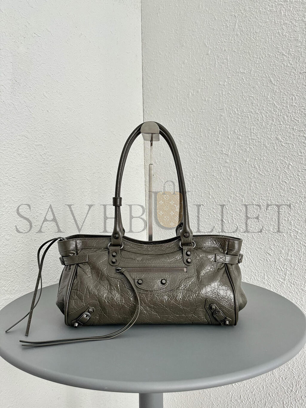 BALENCIAGA WOMEN'S LE CITY BAG EAST-WEST IN ARMY GREEN 8457042ABEK3258 (39.8*17.7*14.9cm)