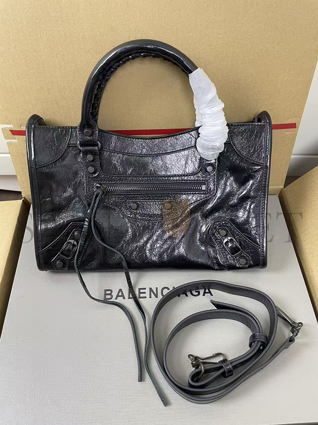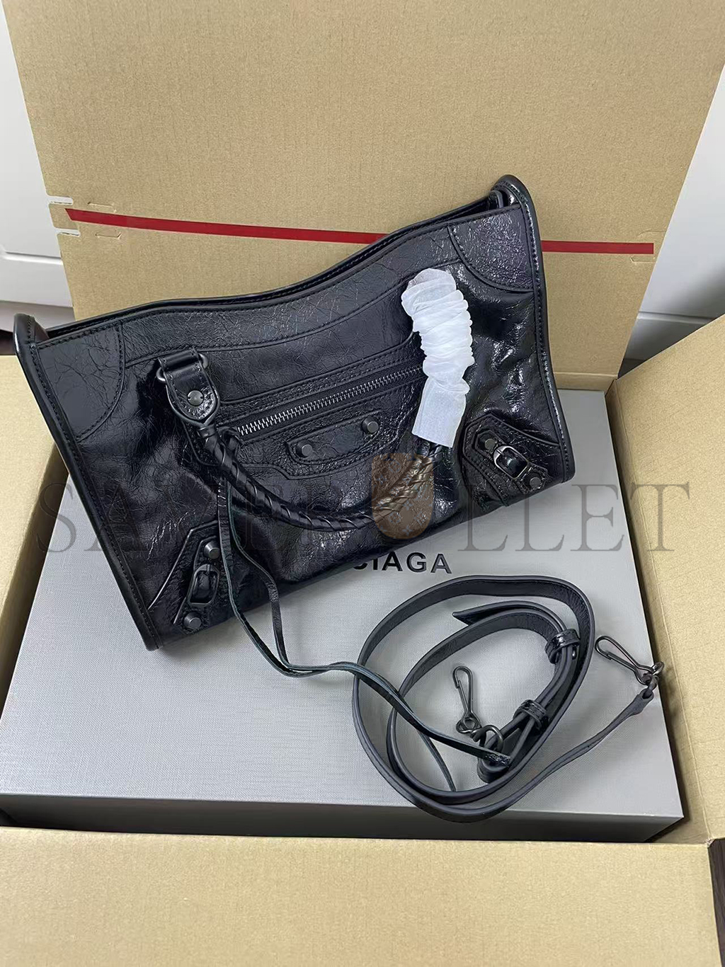 BALENCIAGA WOMEN'S LE CITY BAG MEDIUM IN STEEL GREY 7977862AA9R1314 (37*23.4*14.9cm)