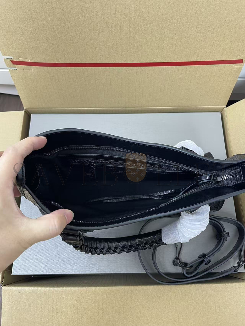 Shoulder, crossbody or hand carryDetachable and adjustable leather strapDetachable donut chain adorned with an Anagram PebbleDiscreet magnetic closure..