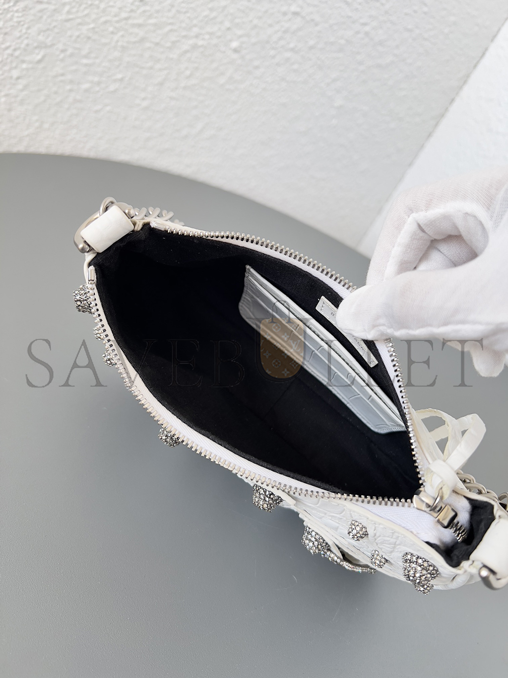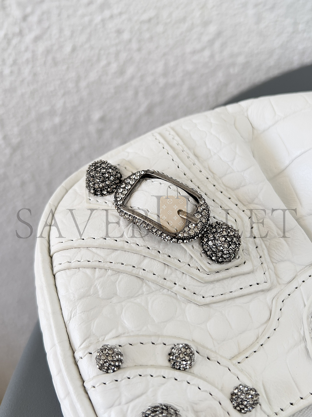 BALENCIAGA GREY HOURGLASS S CROCODILE-EFFECT LEATHER BAG MATCHESFASHION US (22.5*14*10cm)