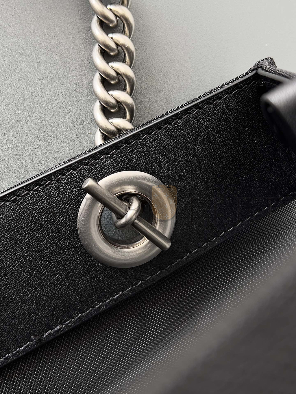 Shoulder, crossbody or hand carryDetachable and adjustable leather strapDetachable donut chain adorned with an Anagram PebbleDiscreet magnetic closure..