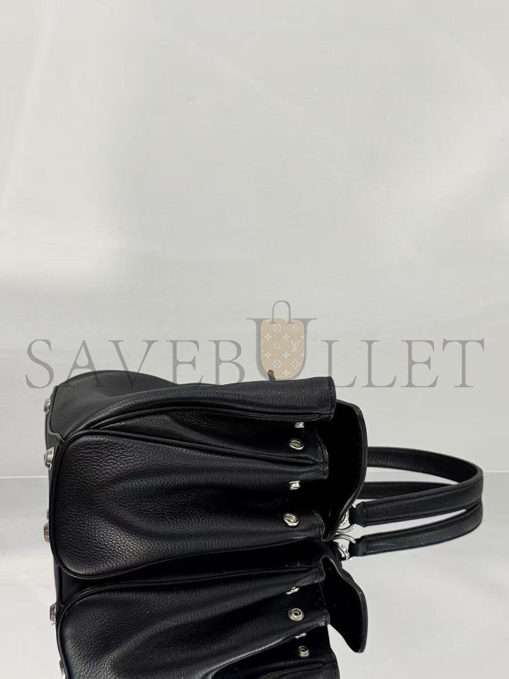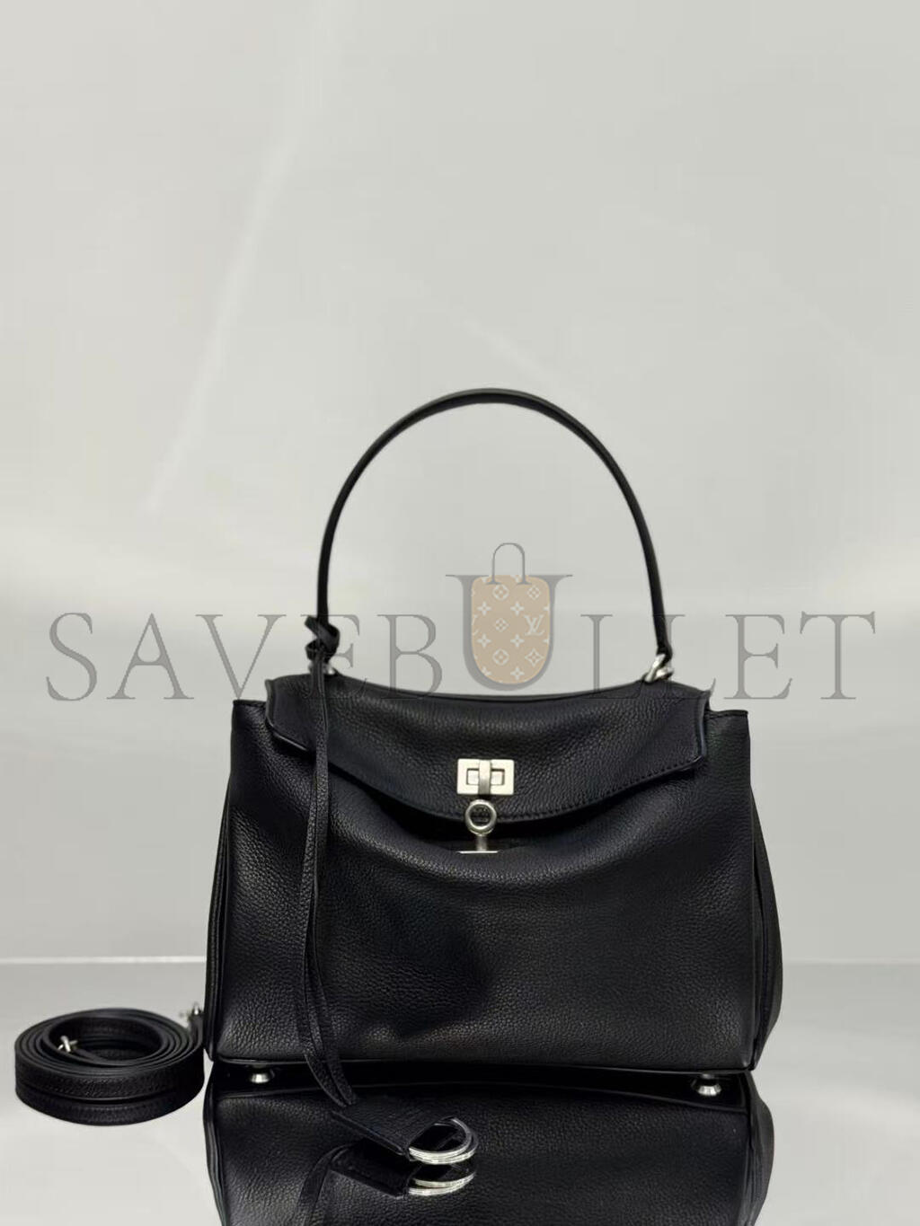 BALENCIAGA WOMEN'S RODEO HANDBAG SMALL GRAINED CALFSKIN IN BLACK 7897792ABV52000 (27*20*10cm)