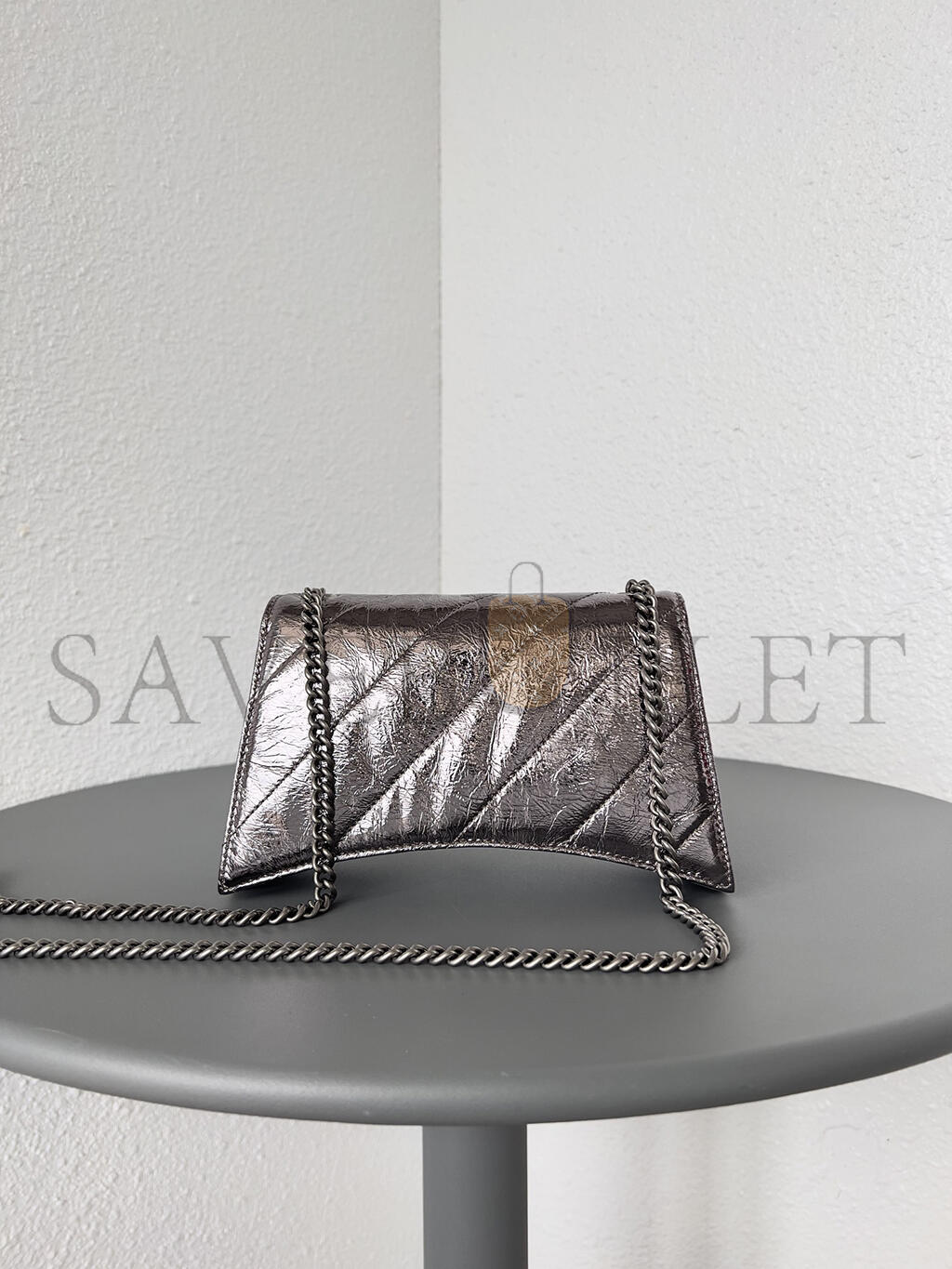 BALENCIAGA WOMEN'S CRUSH CHAIN BAG MINI IN SILVER 736016210S11000 (21.8*9.9*4.8cm)