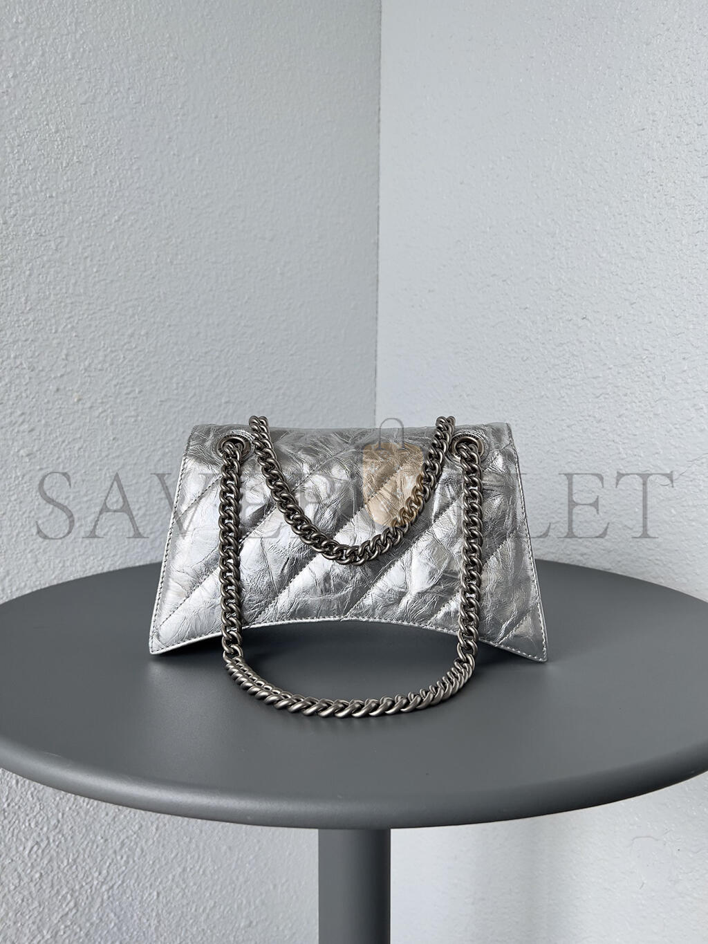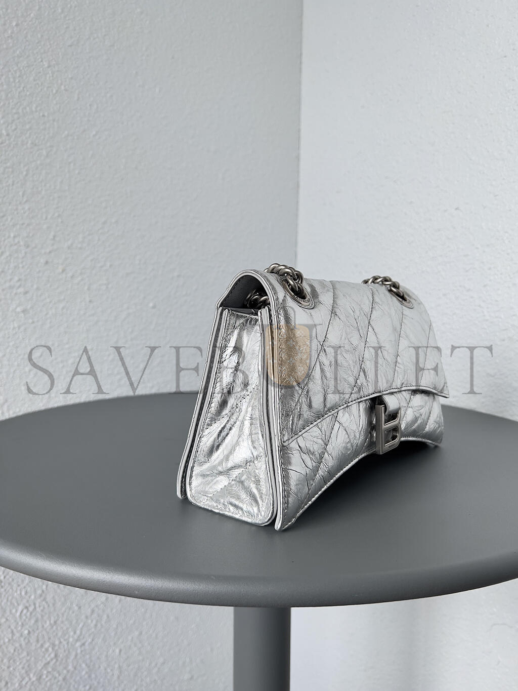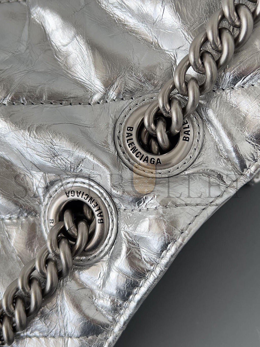 BALENCIAGA WOMEN'S CRUSH CHAIN BAG IN SMALL SILVER 716351210IW8110 (24.9*15*7.9cm)