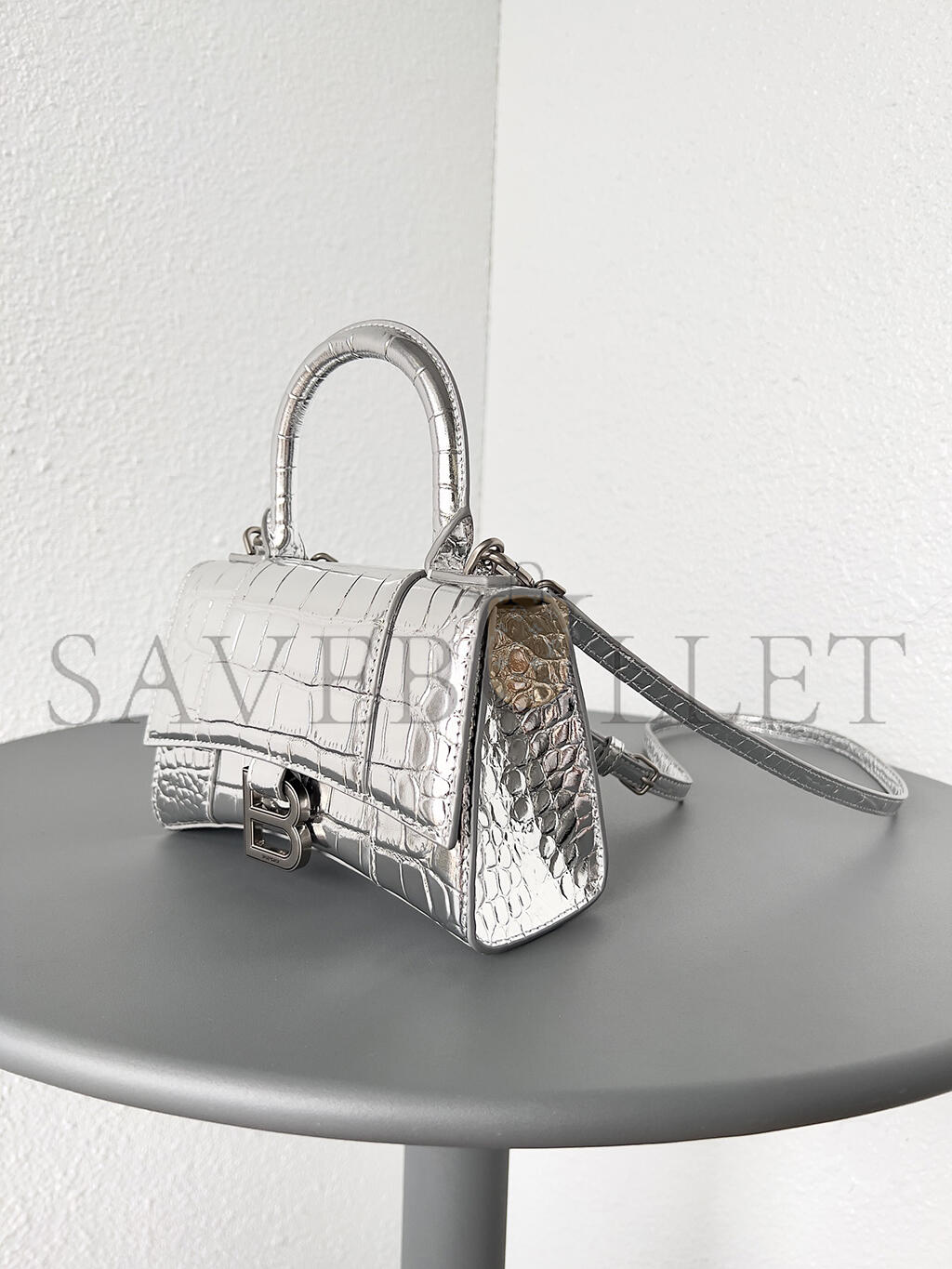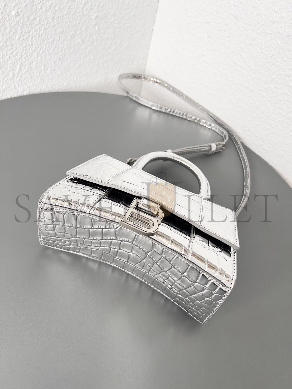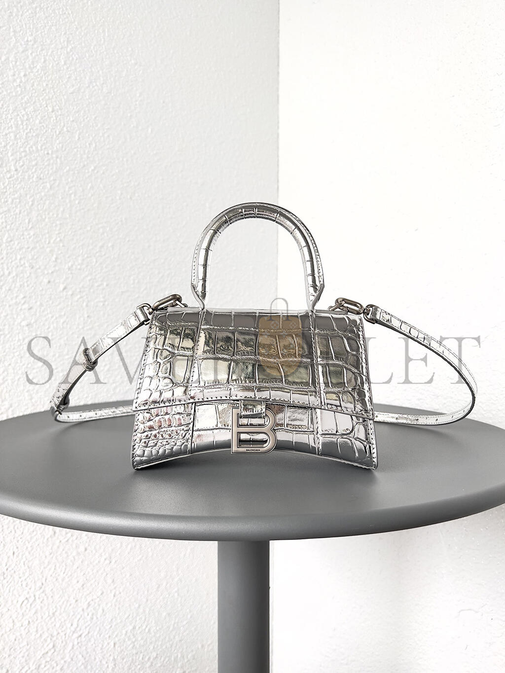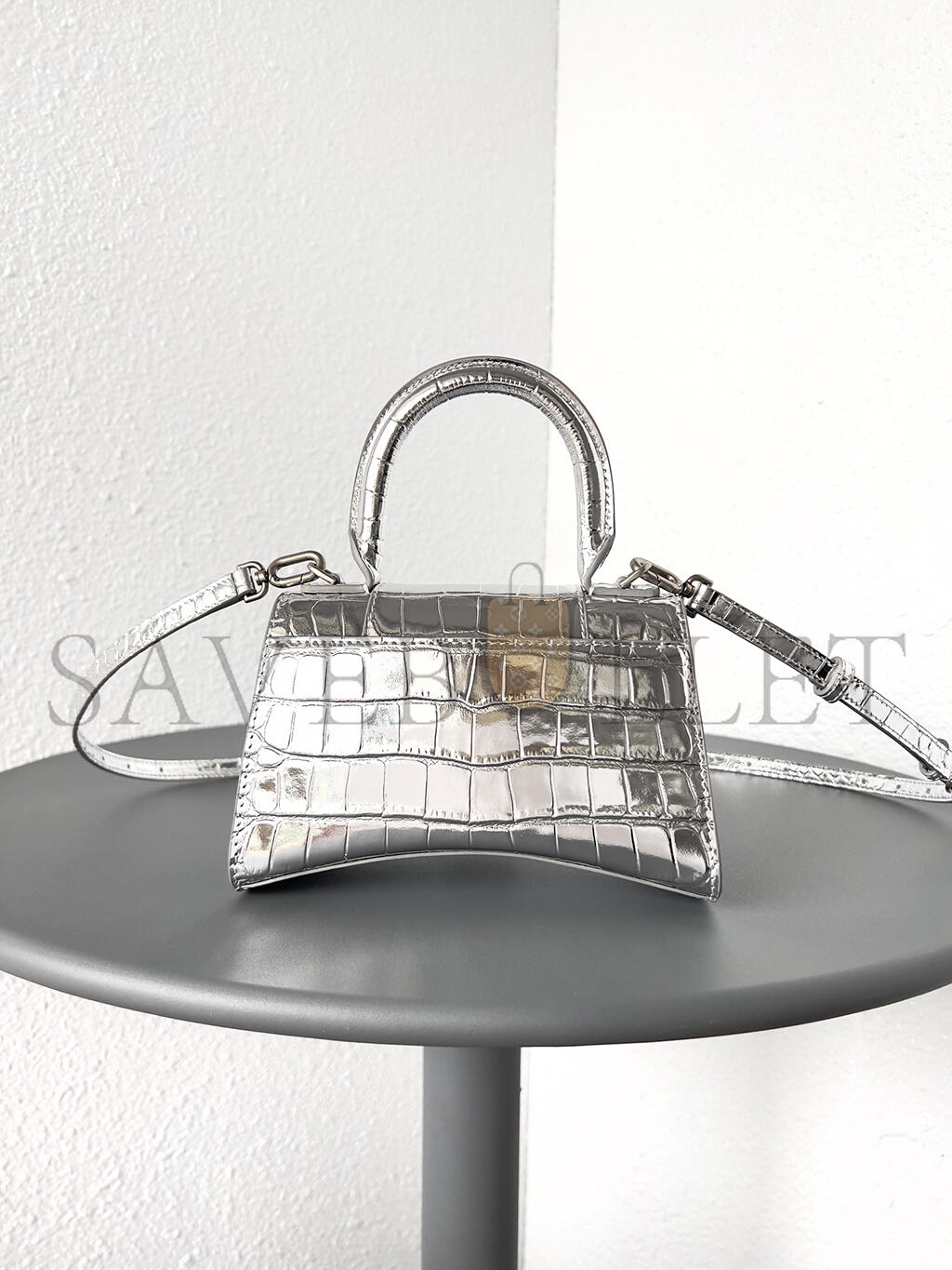 BALENCIAGA WOMEN'S HOURGLASS HANDBAG XS IN SILVER 5928331S4CY8110 (18.8*13*7.9cm)