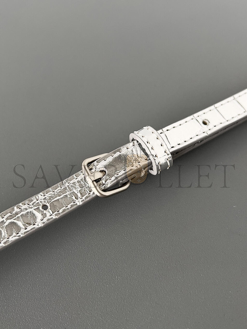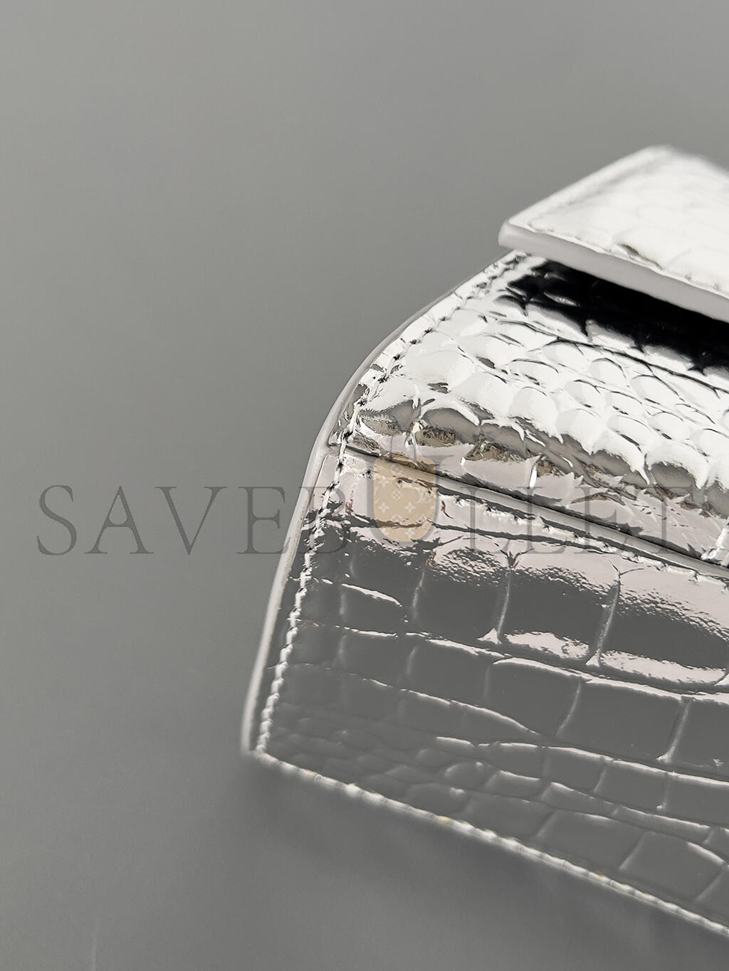 Metallized shiny crocodile embossed calfskin