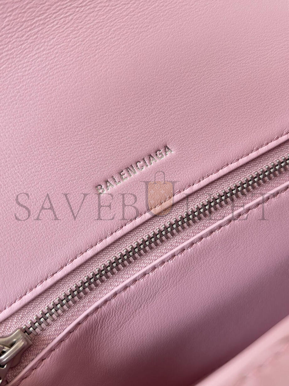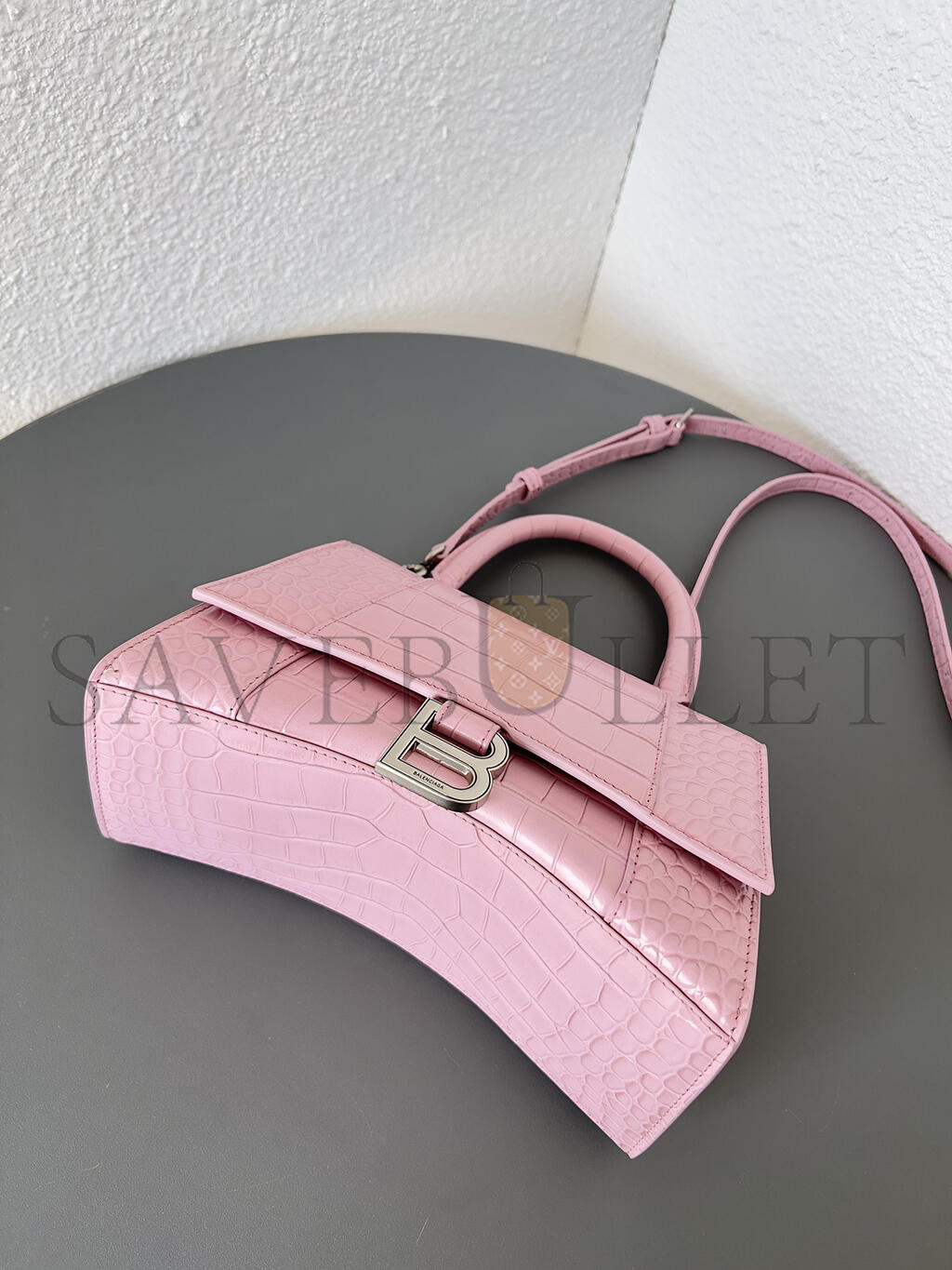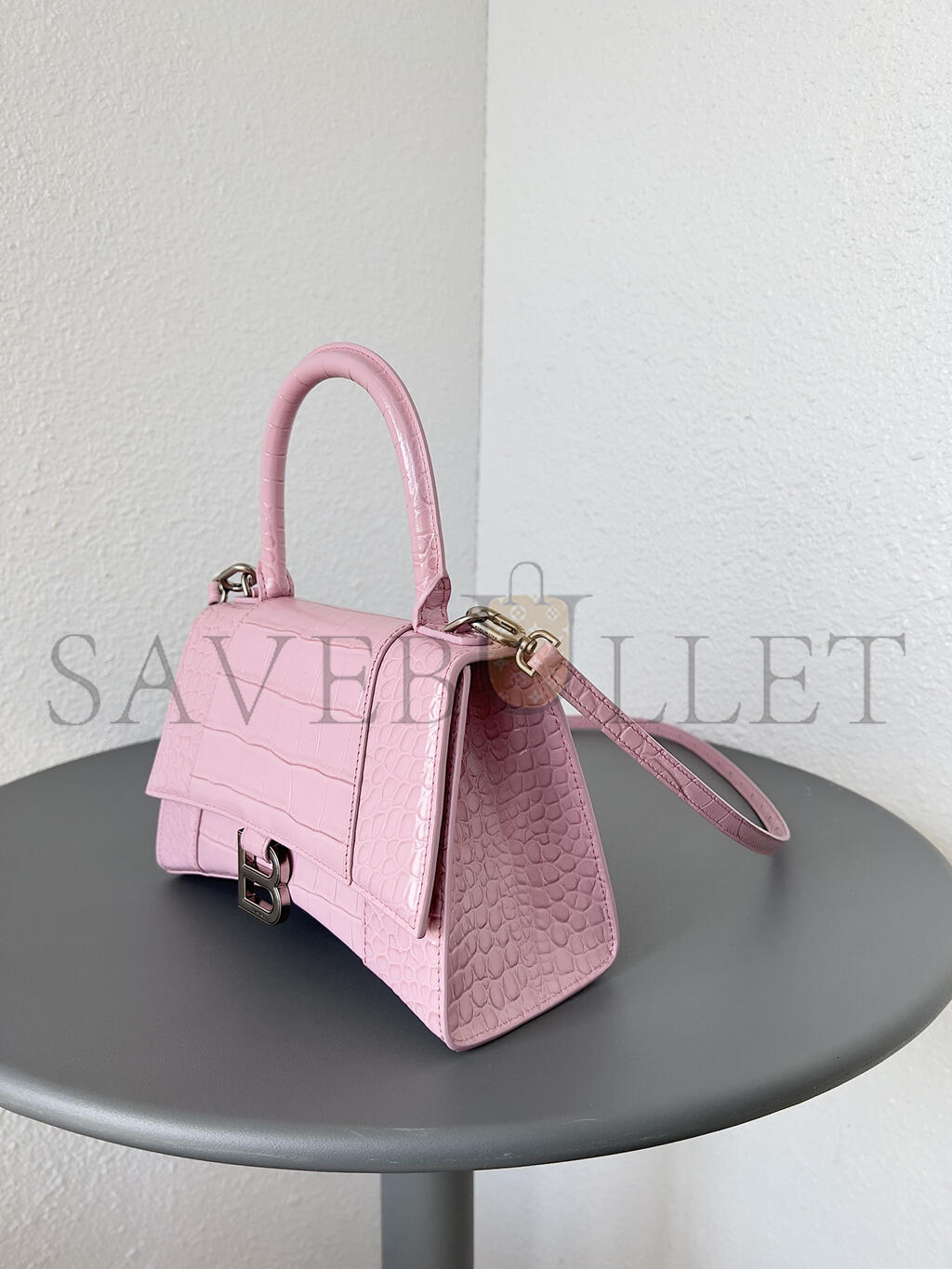 BALENCIAGA WOMEN'S HOURGLASS HANDBAG SMALL IN ROSE PINK 5935461LR6Y5812 (22.9*15*9.9cm)