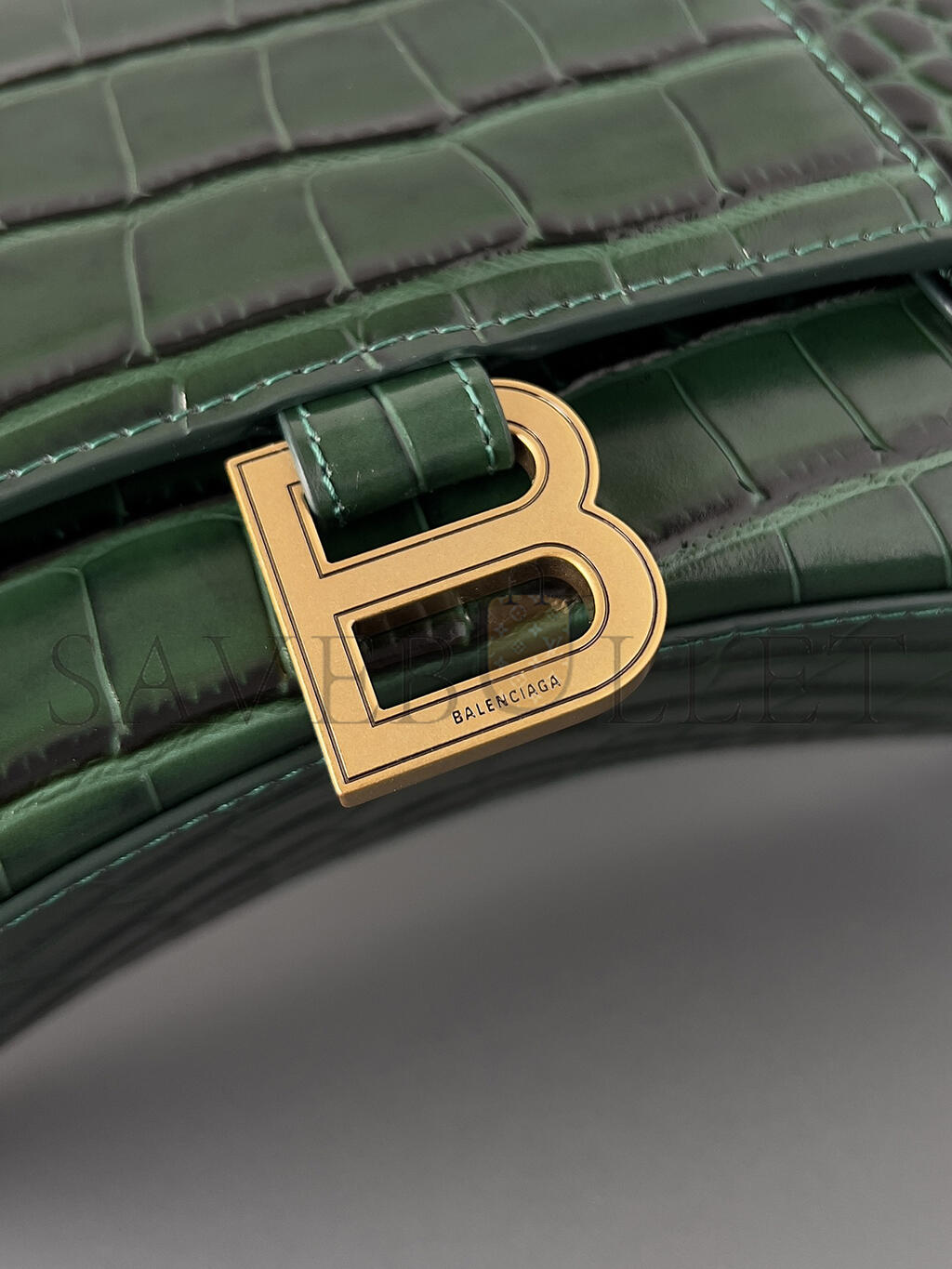 BALENCIAGA WOMEN'S HOURGLASS HANDBAG SMALL IN GREEN 5935461LRGM0212 (22.9*15*9.9cm)