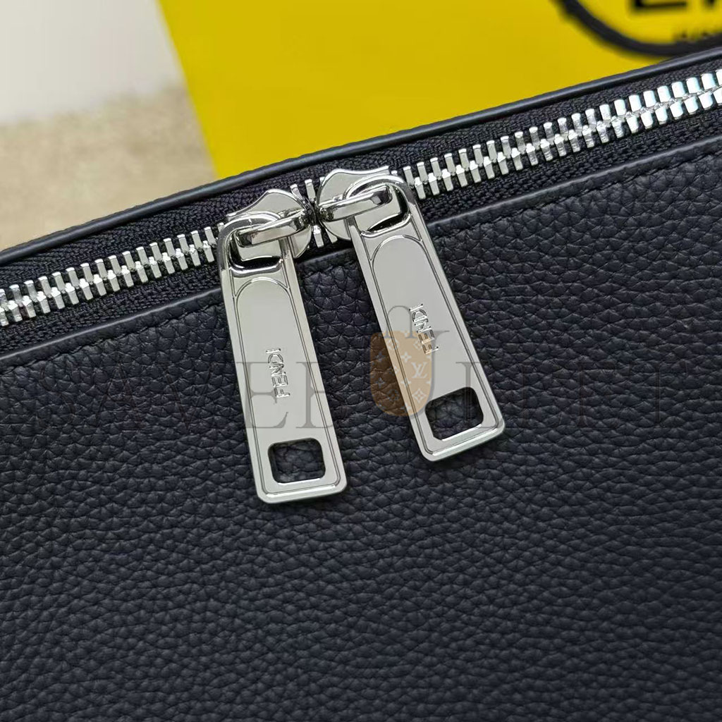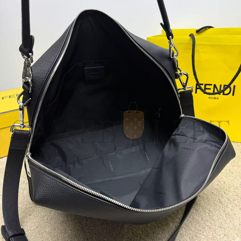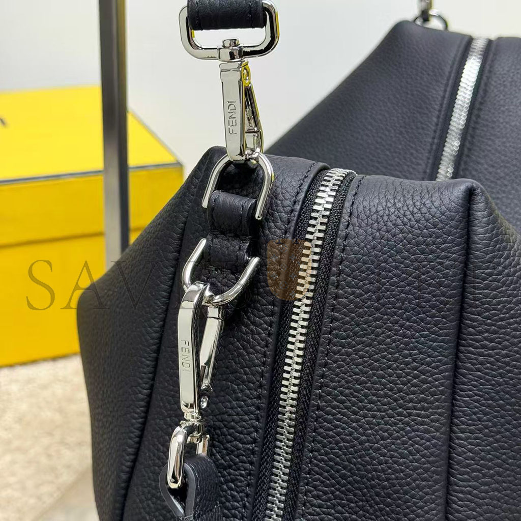 Large Fendi Lui bag with a soft design, made of black full-grain calf leather. Decorated with a long zip fastening with double slider and FF metal appliqués on the corners.