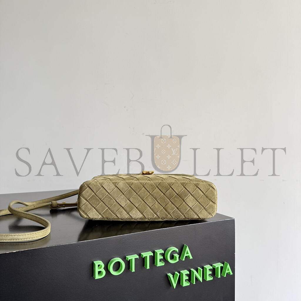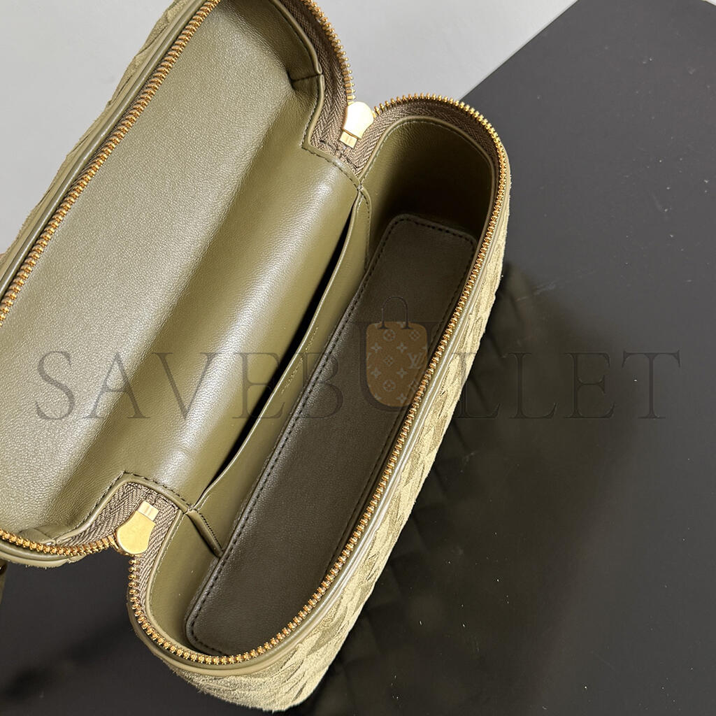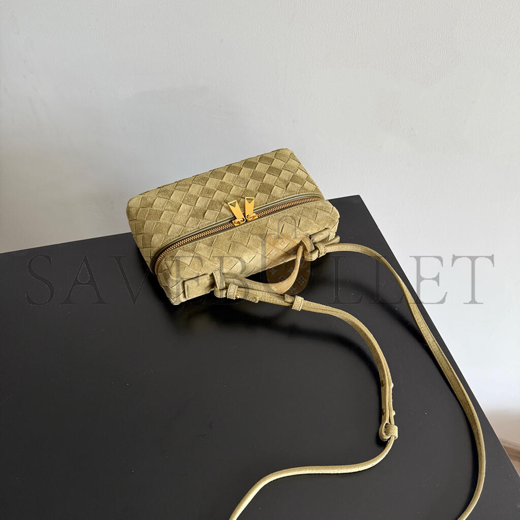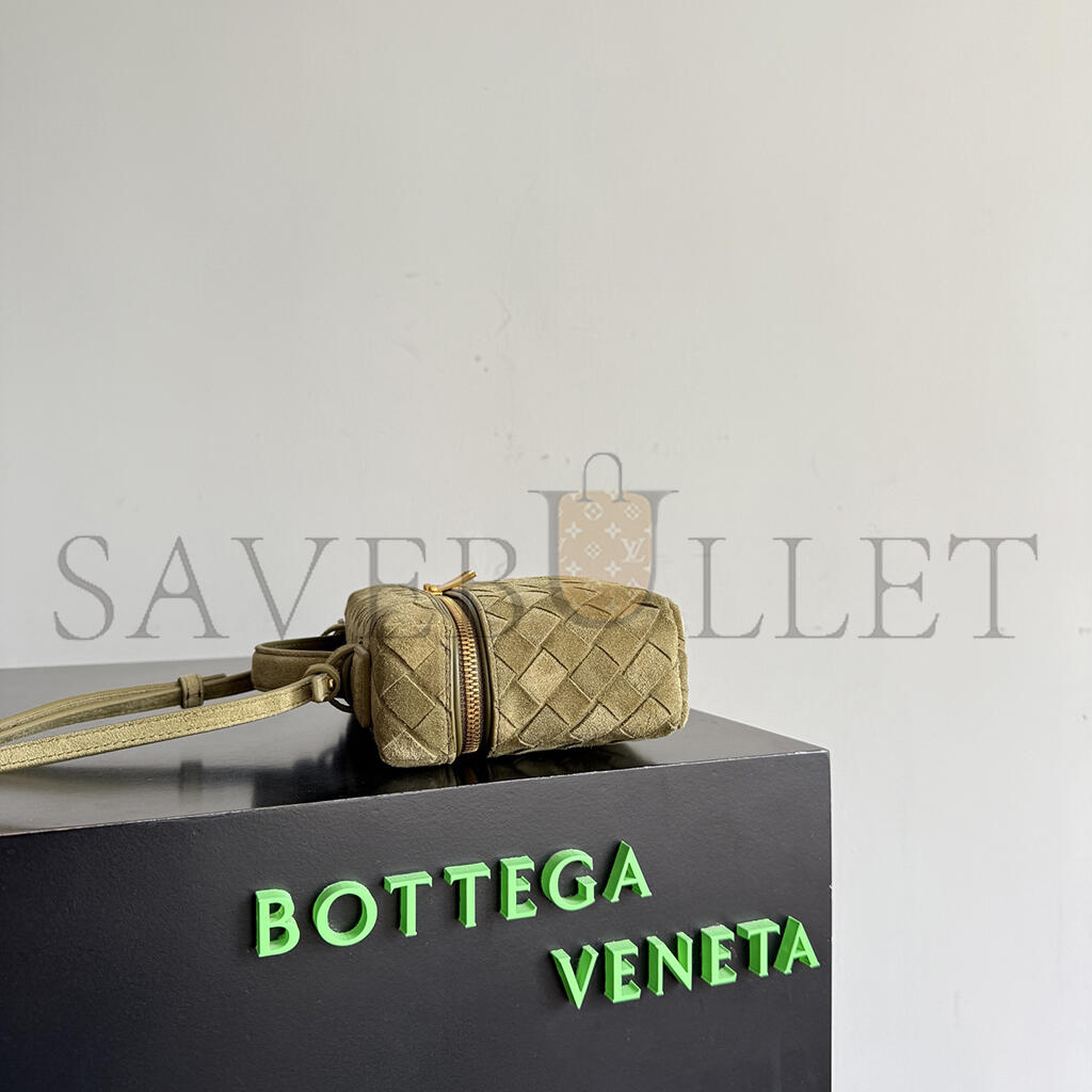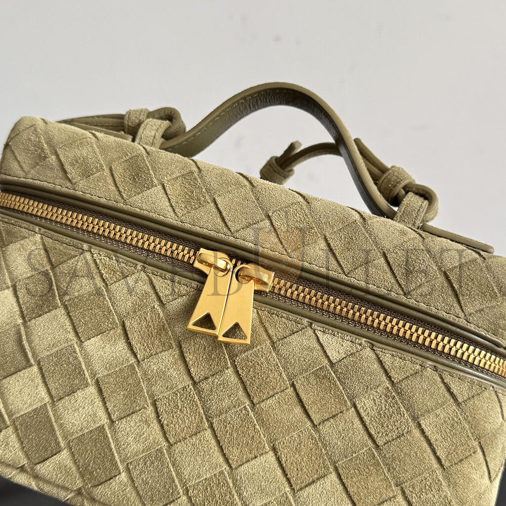 BOTTEGA VENETA GREEN BANG BANG VANITY CASE MUD SUEDE BAG 789109 (22*12.5*5cm)