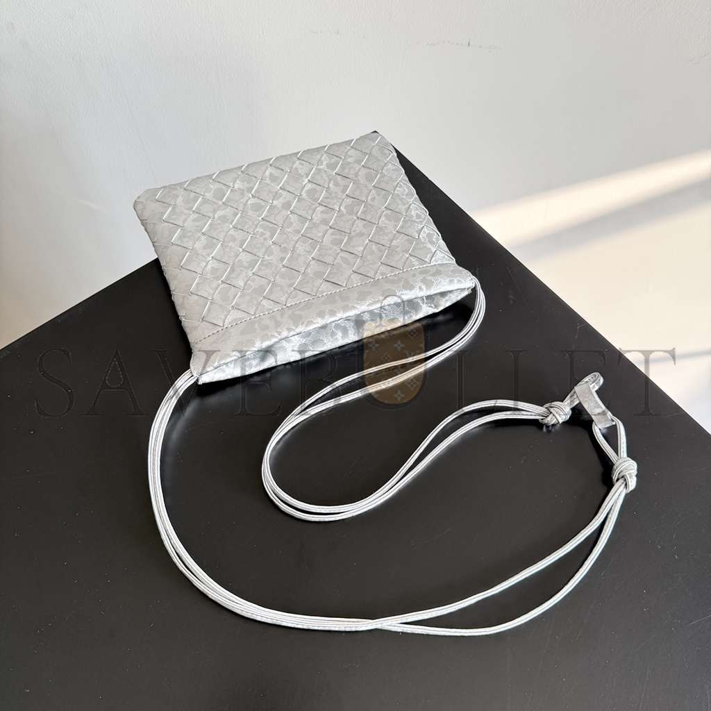 Intrecciato lamina satin leather pouch