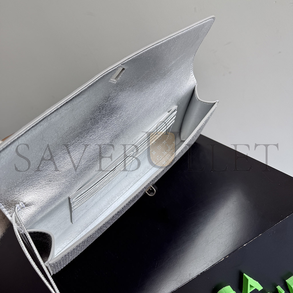 BOTTEGA VENETA LEATHER CRYSTAL-EMBELLISHED ANDIAMO CLUTCH BAG 844124 (33*13*3cm)