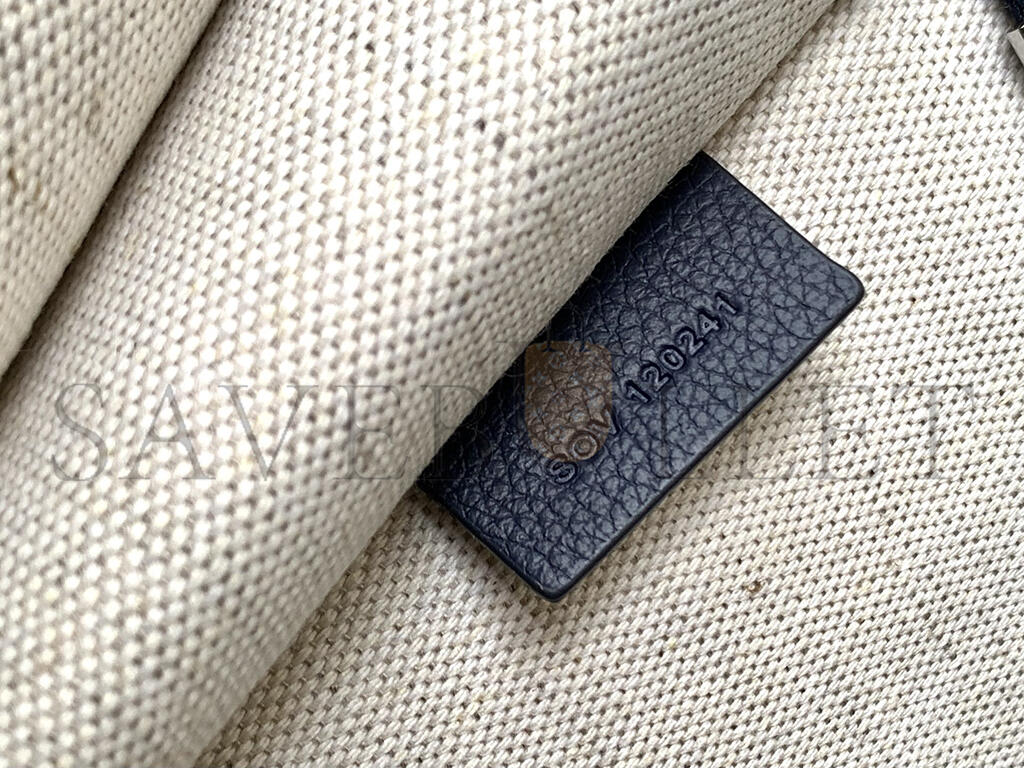 Style ‎815206 AAEFH 1000Black soft leatherLight gold-toned hardwareBrown cotton linen liningHorsebit detail at the frontInside: 1 open pocketTop handl..