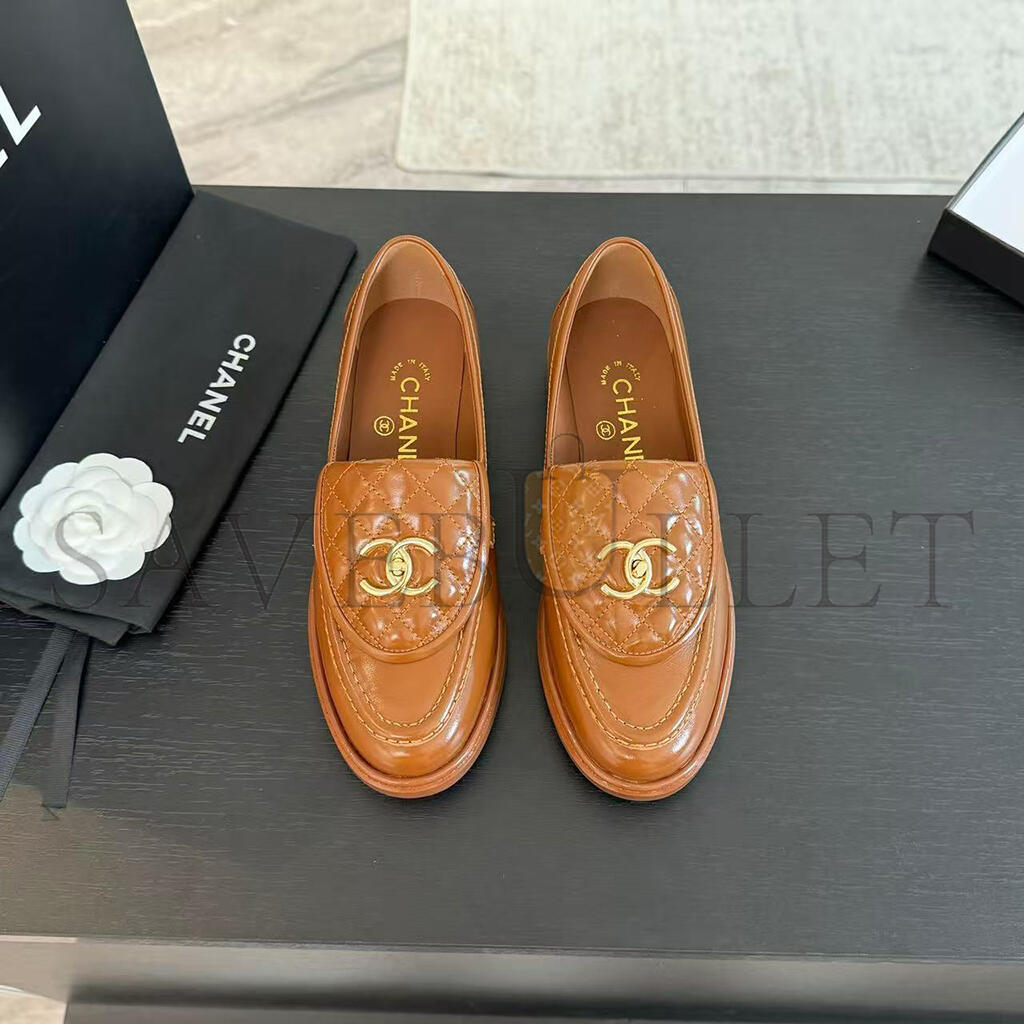 CHANEL QUILTED LEATHER CC TURNLOCK LOAFERS