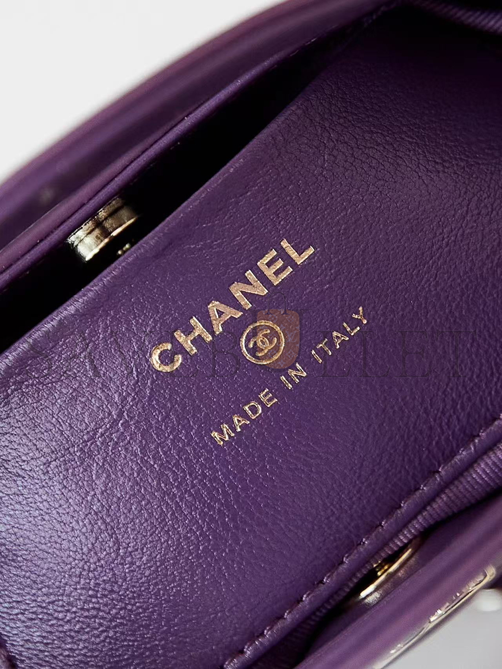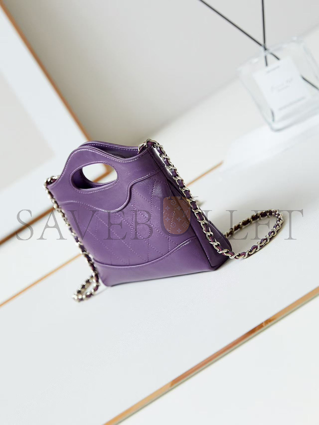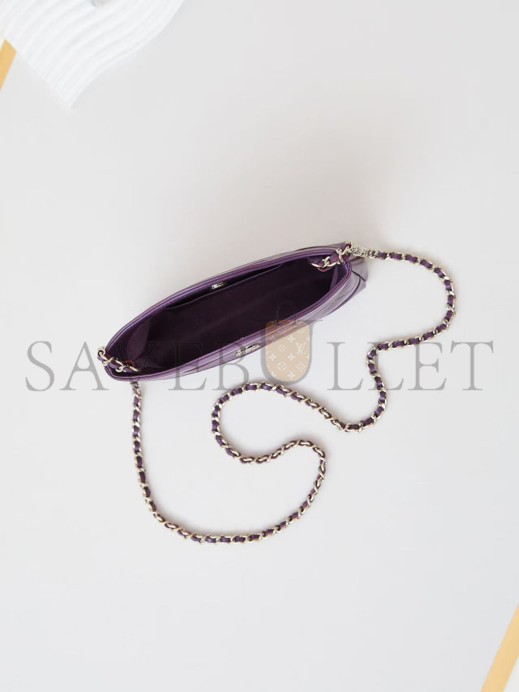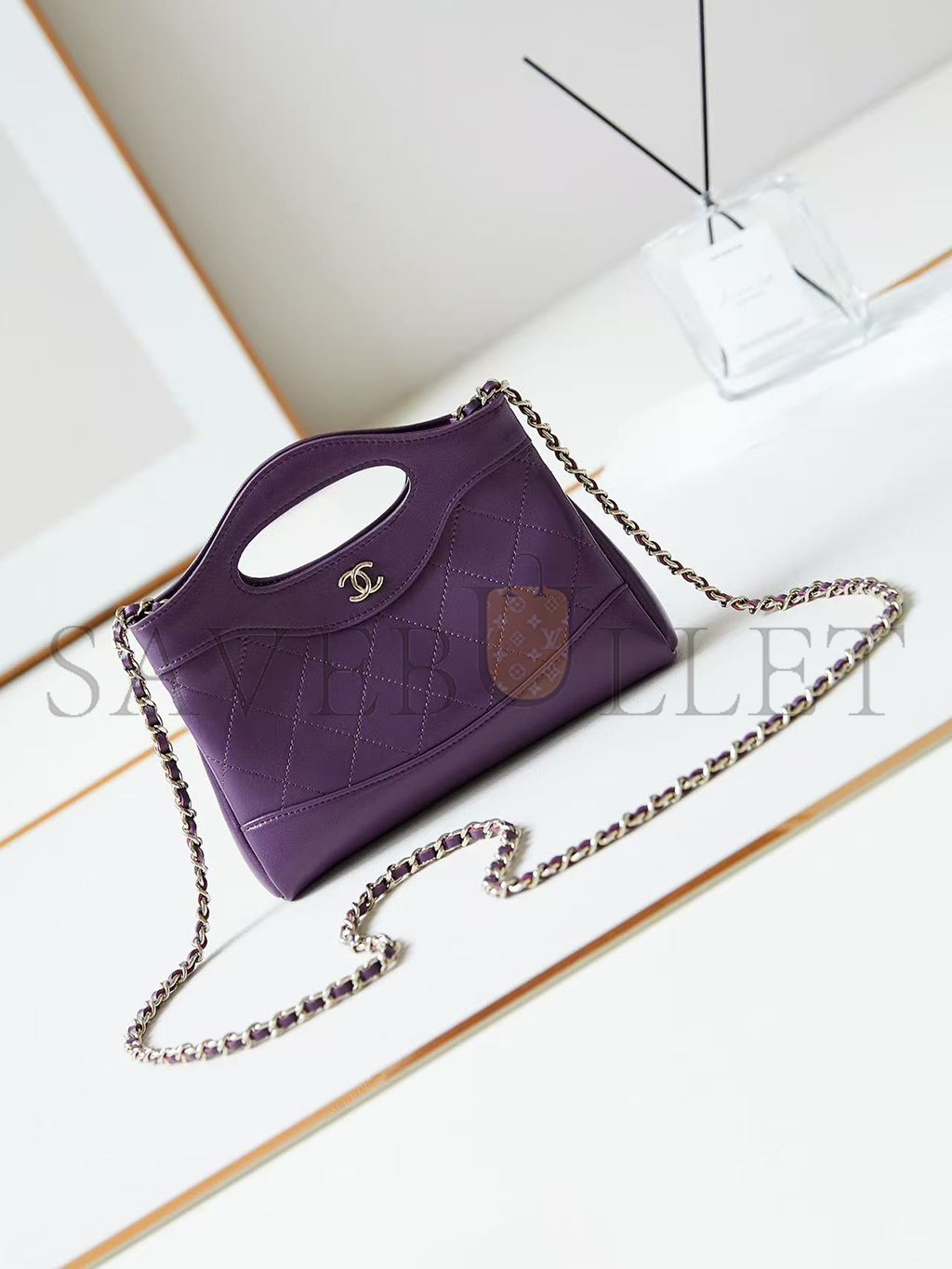 CHANEL MINI 31 CLUTCH WITH CHAIN SHINY CALFSKIN PURPLE LGHW AP3656 (20.5*17*3.5cm)