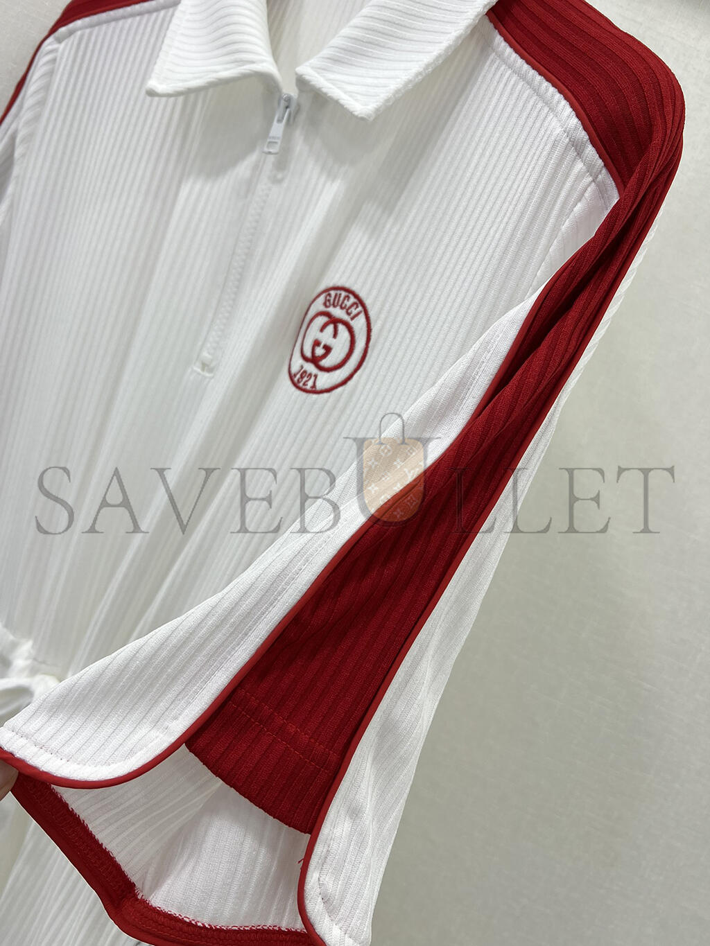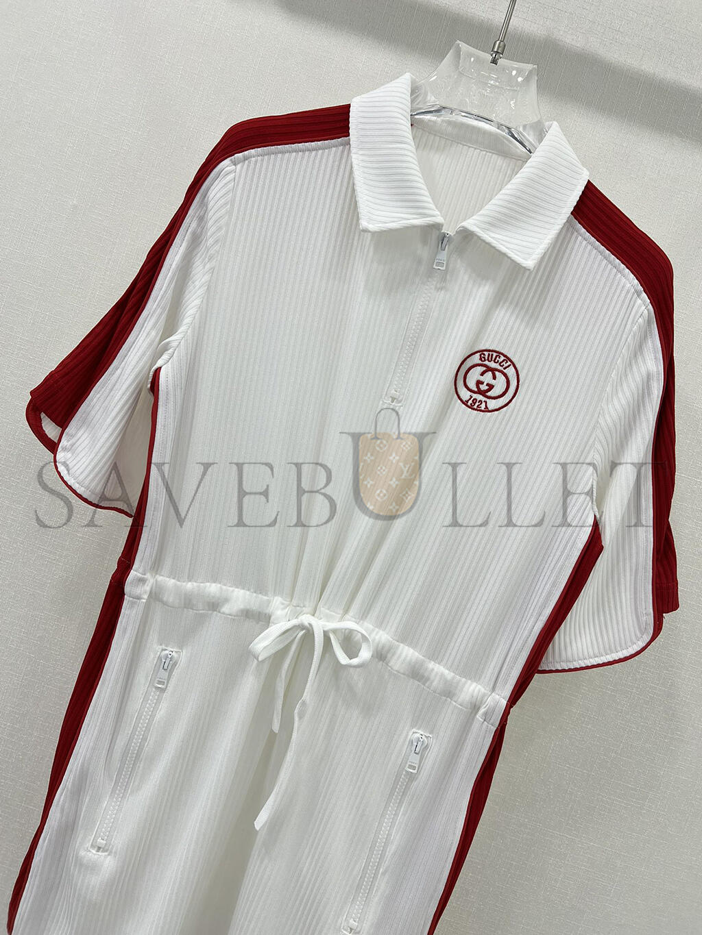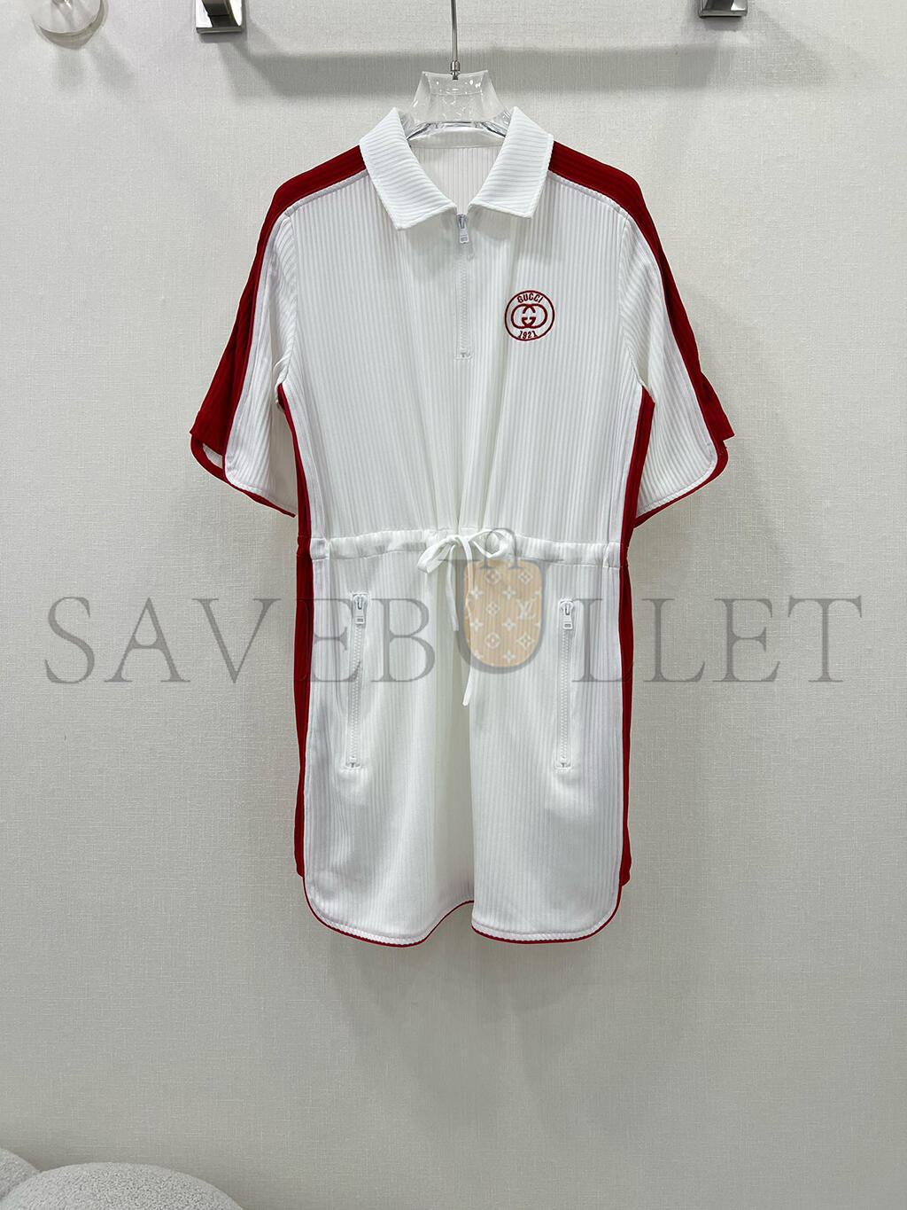 GUCCI LIDO EMBROIDERED ZIP SHORT SLEEVE DRESS 743080