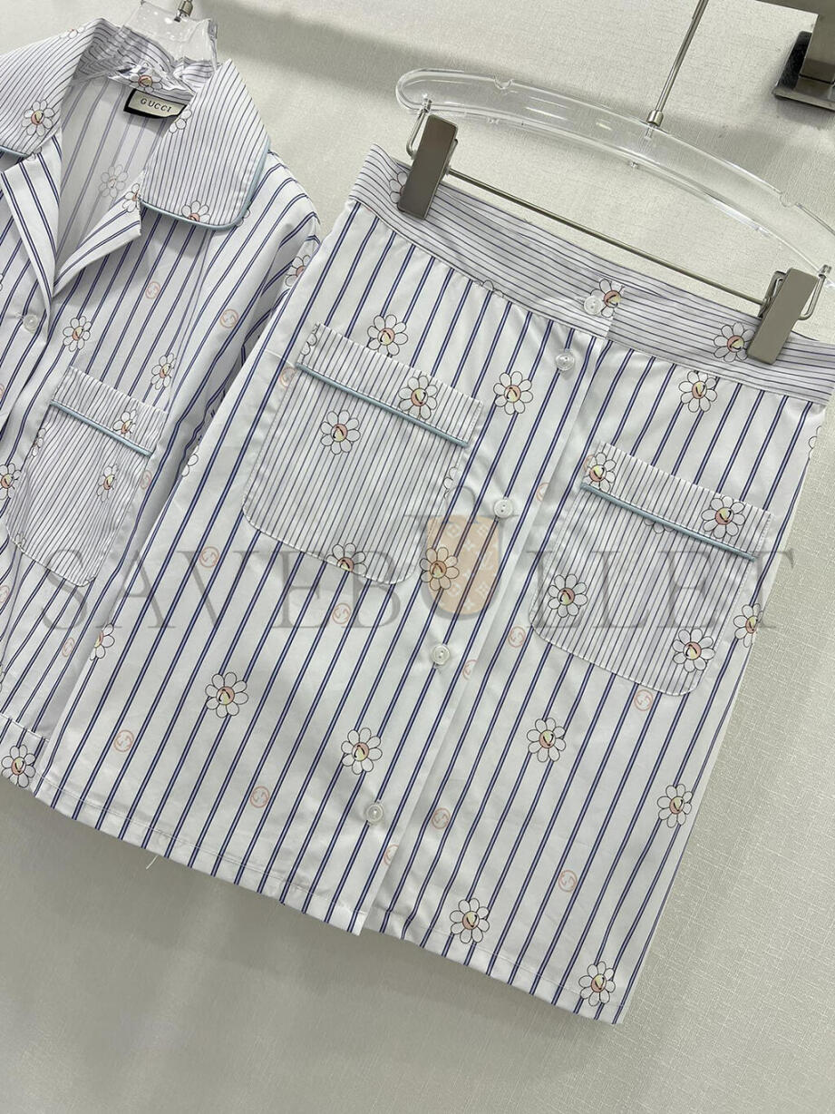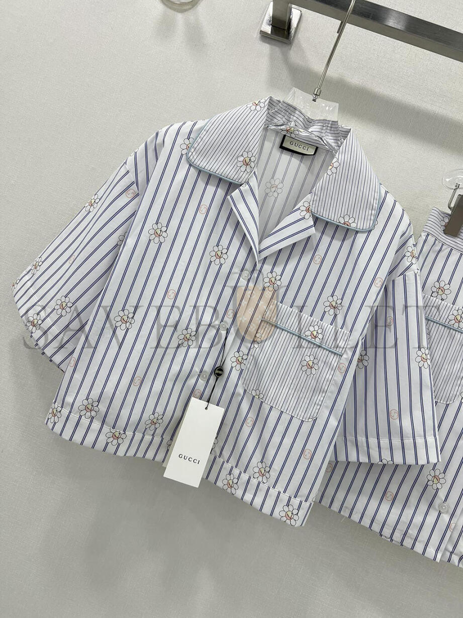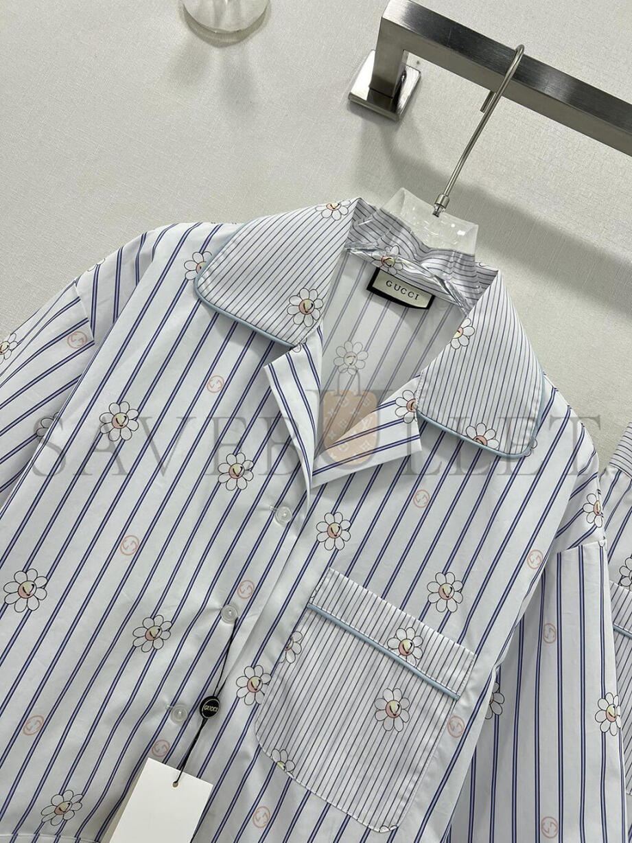 GUCCI SS24 FLORAL STRIPED PRINT SHORT-SLEEVED SHIRT 781761