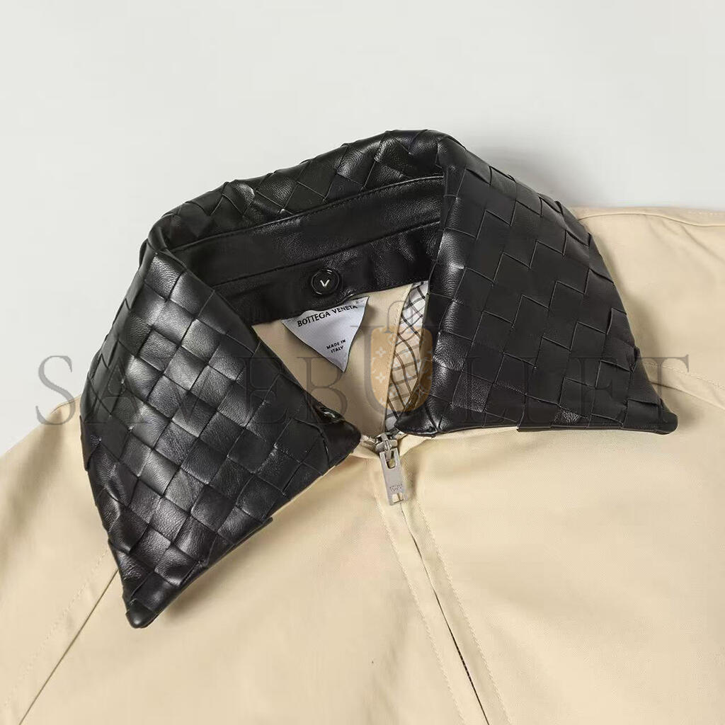 Blouson in fluid cotton twill with detachable Intrecciato leather collar.