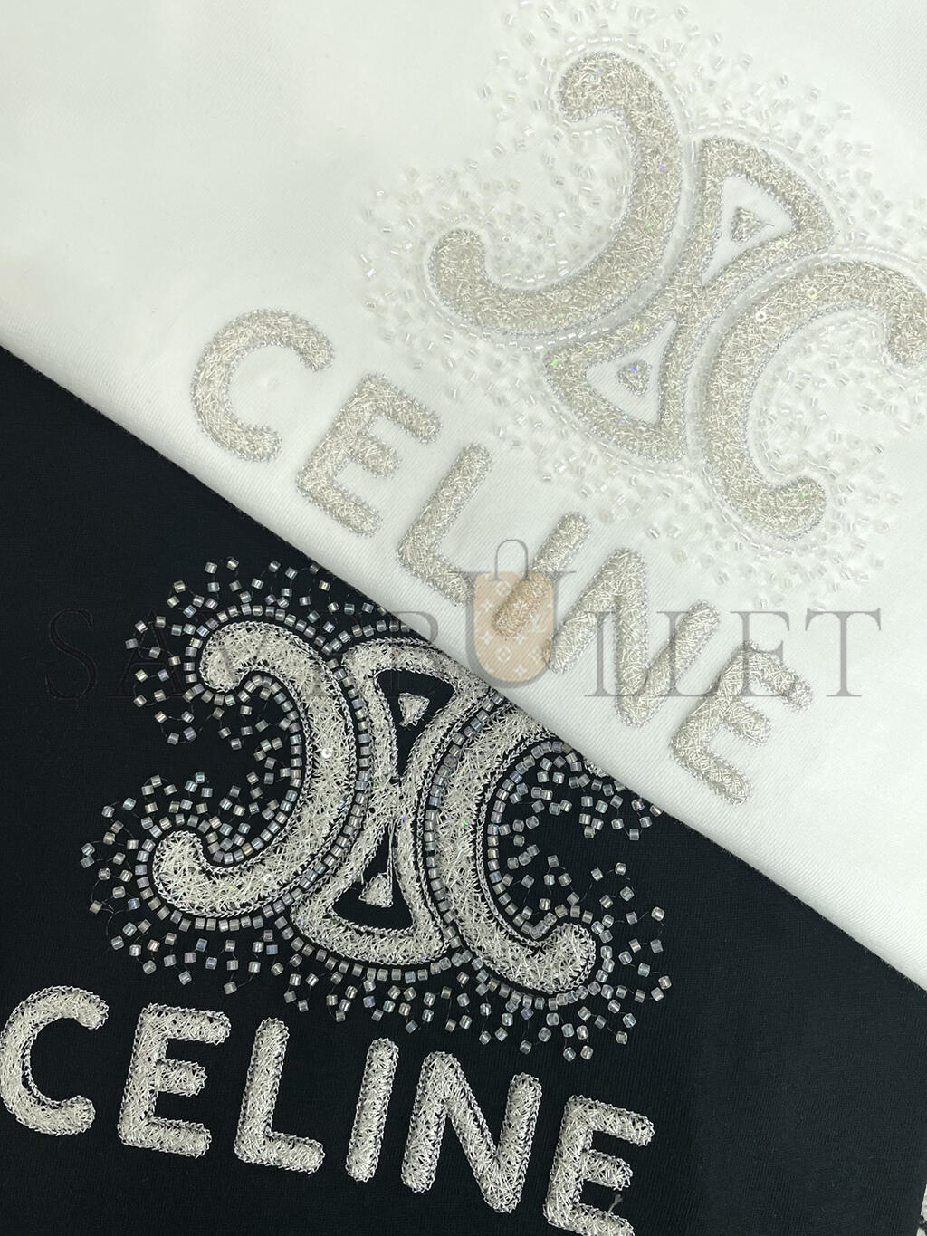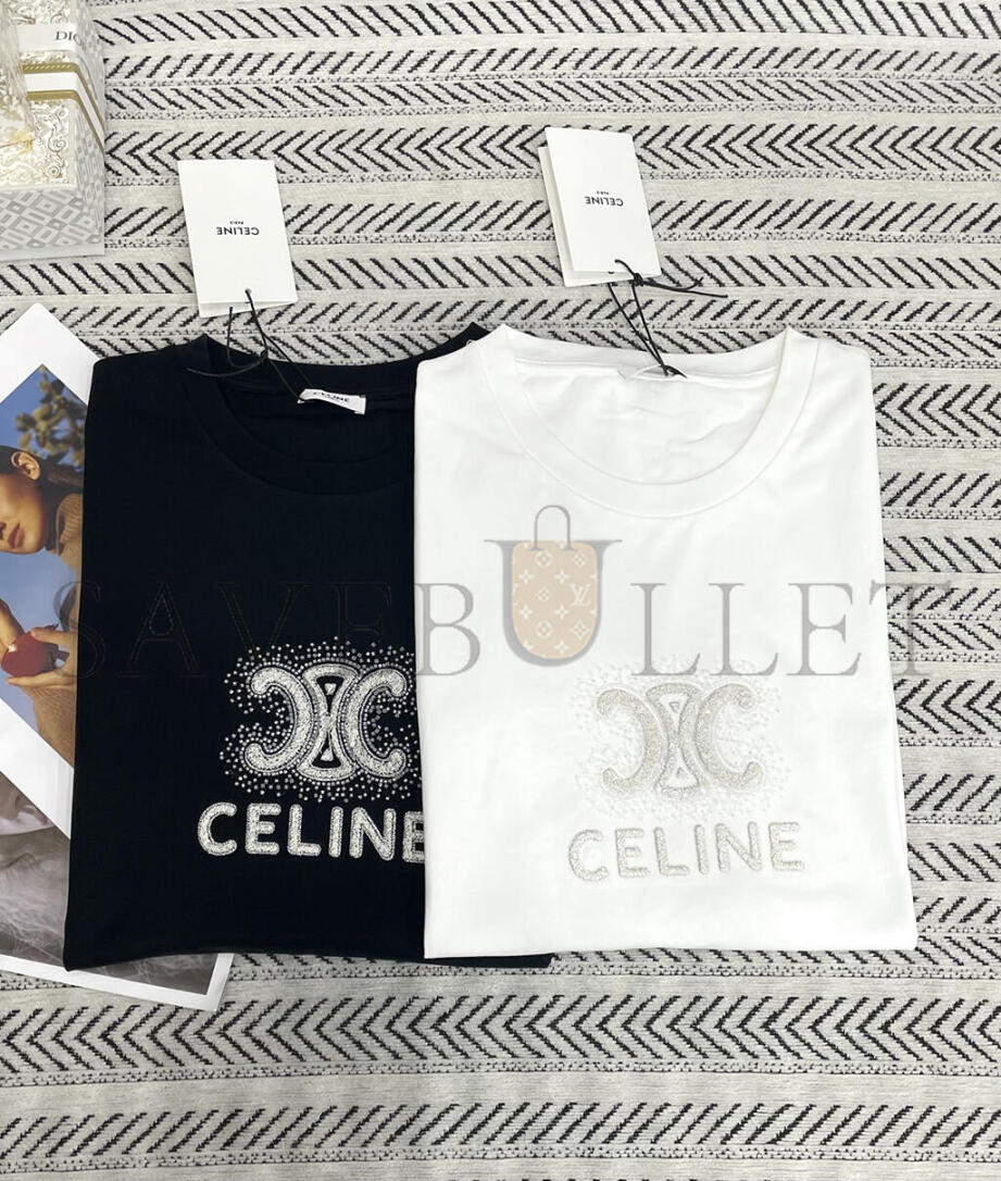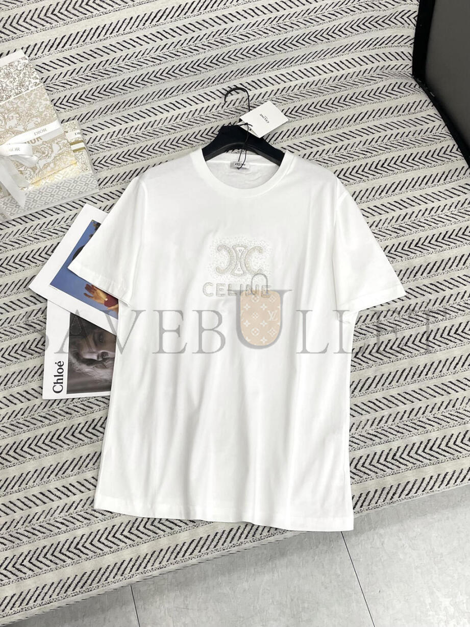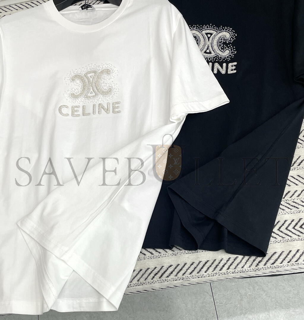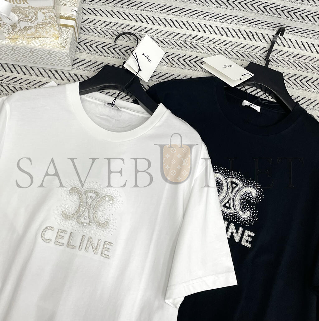 CELINE HEAVY INDUSTRY ARC DE TRIOMPHE LETTER BEADED T-SHIRT