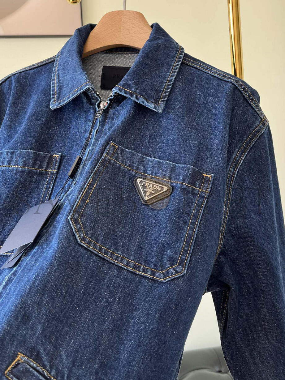 PRADA LOGO-APPLIQUÉ DENIM JACKET
