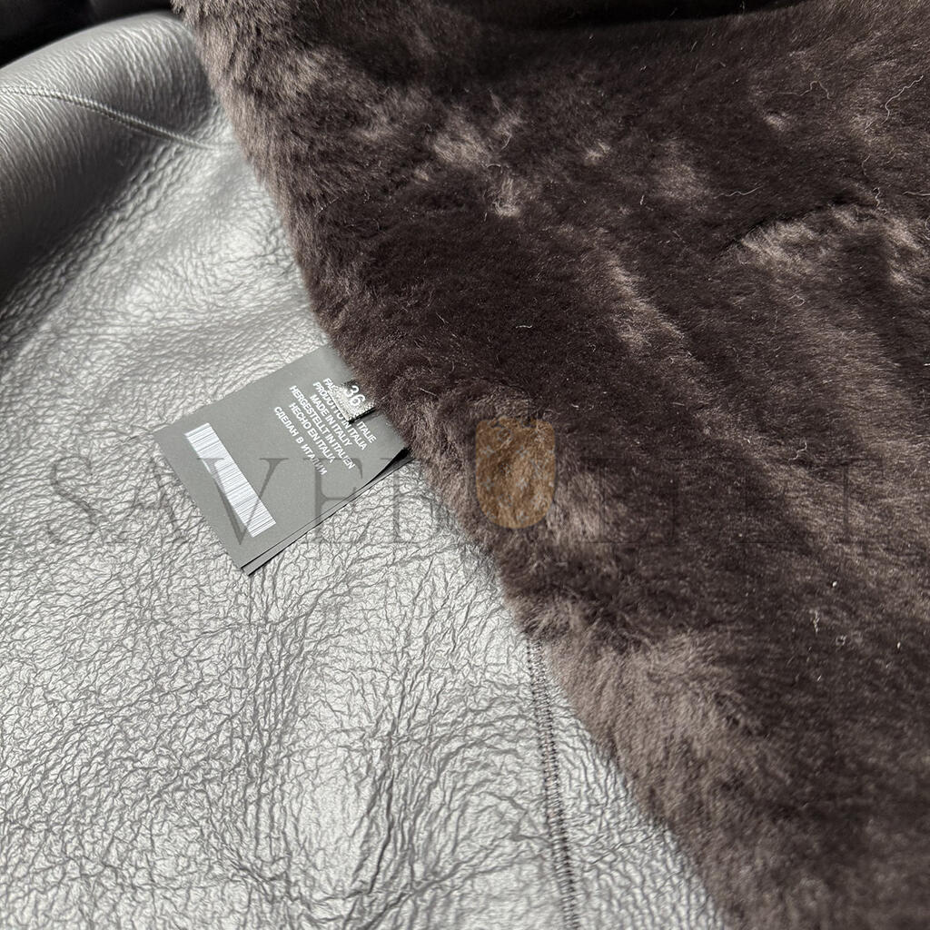 9.8 x 3.9 x 3 inches(Length x Height x Width)BlackLambskin leatherCowhide-leather and coated-canvas trimMicrofiber liningSilver-toned hardwareZip clos..