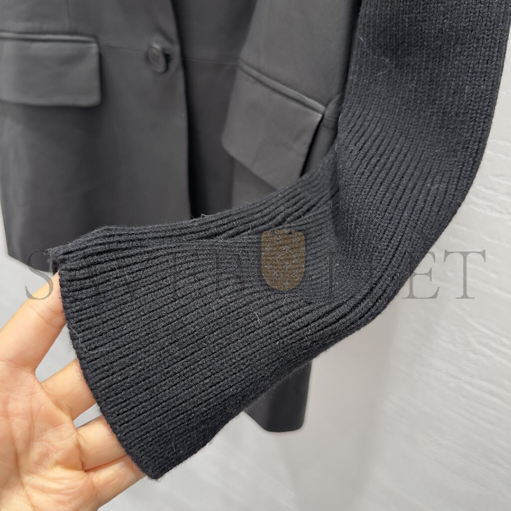 LORO PIANA KNITTED PATCHWORK LEATHER SUIT JACKET