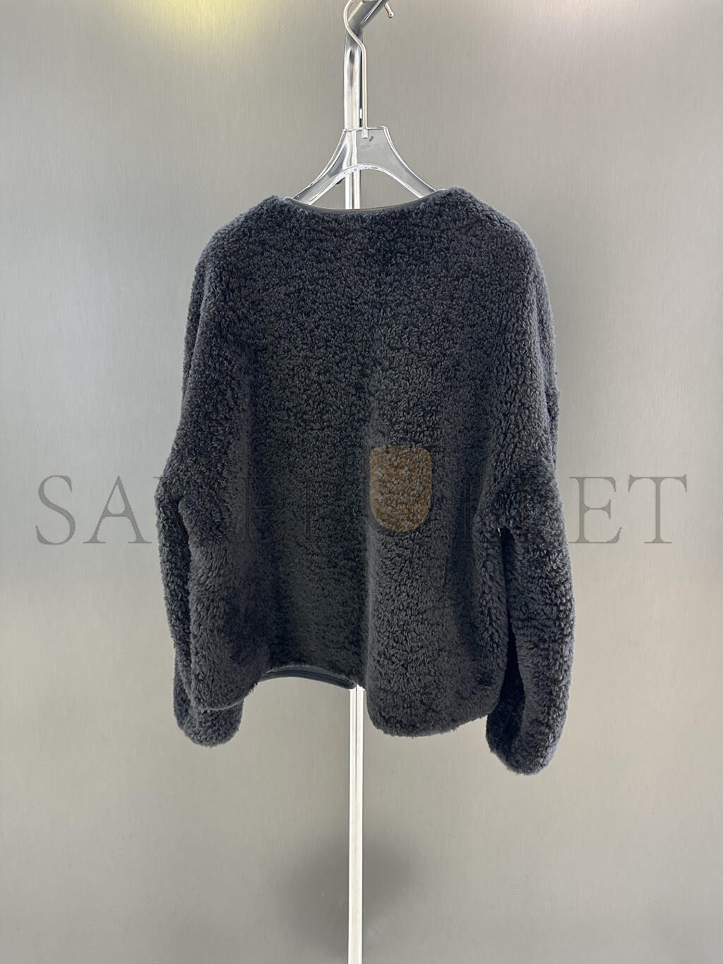 This season, the body-friendly and ultra-comfy Coussin MM handbag is made from Monogram-embossed puffy lambskin in a timeless grey hue with gold-color..