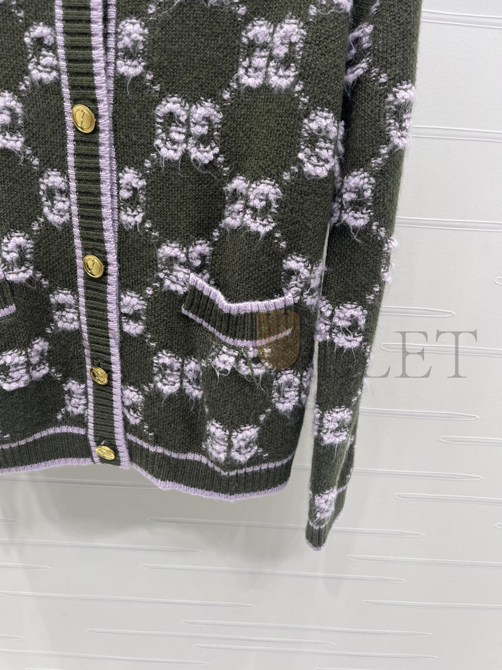 Forest green and lilac GG wool bouclé jacquard