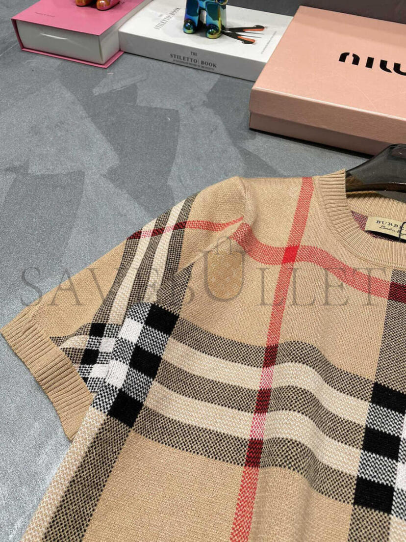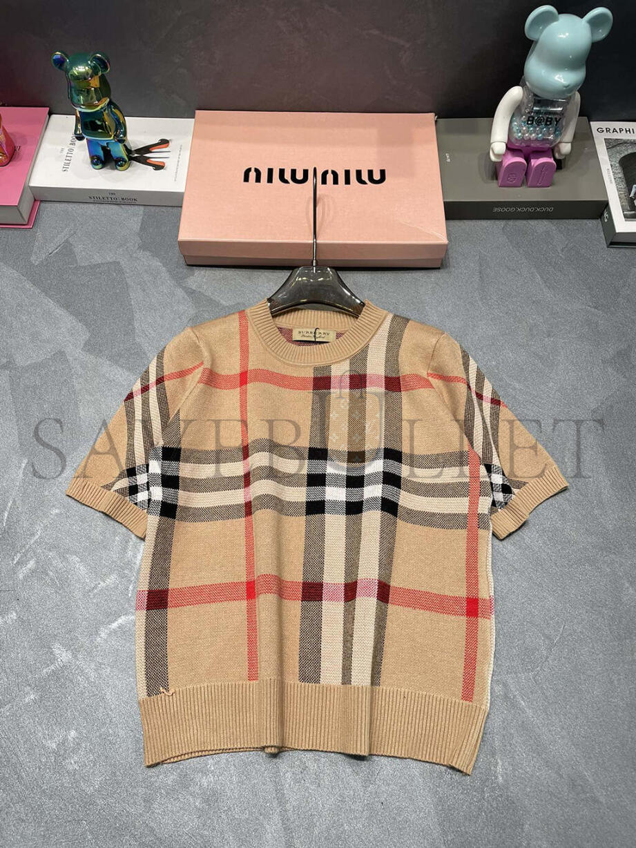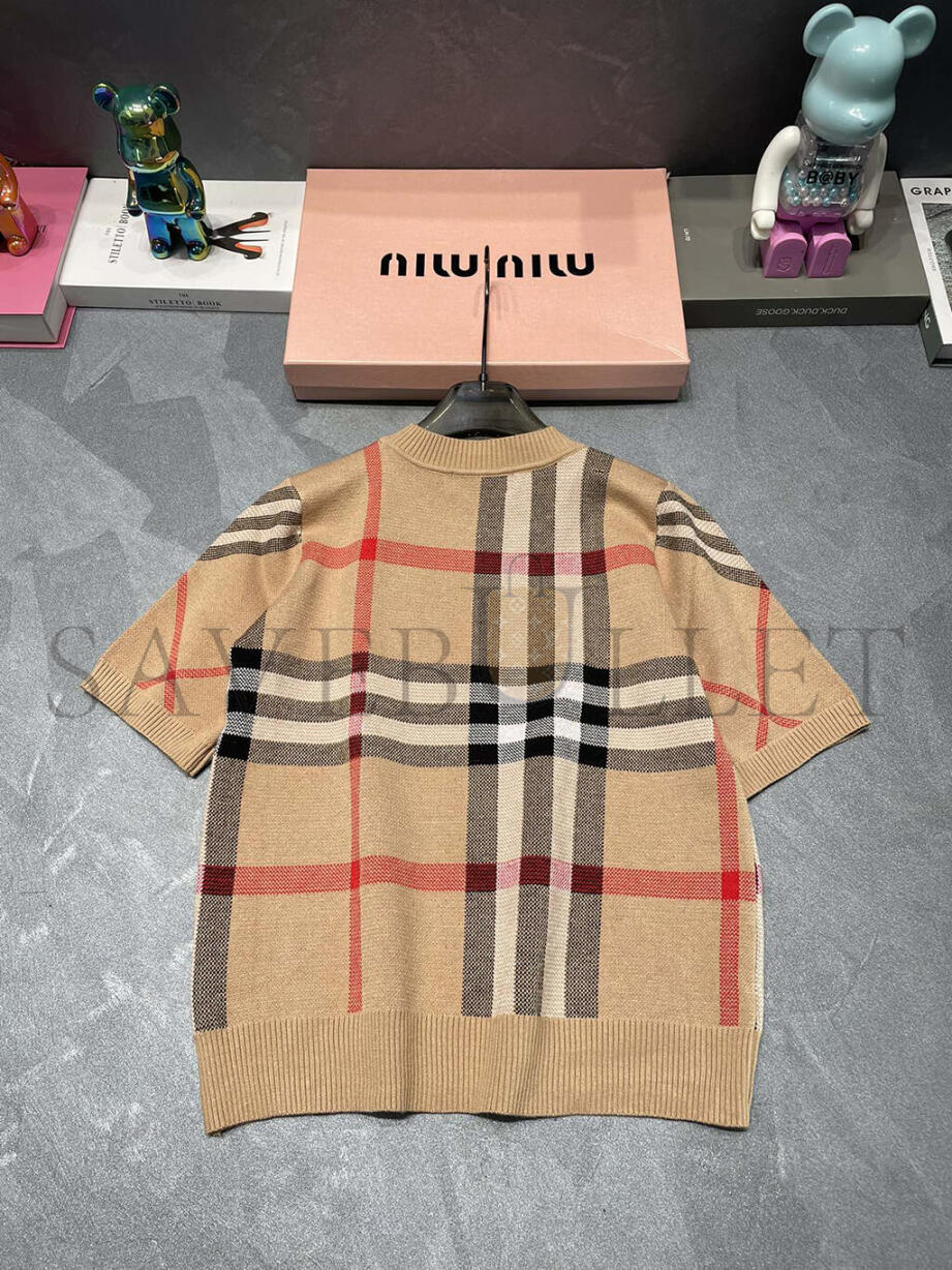 BURBERRY ROUND NECK PLAID KNIT SHORT SLEEVE