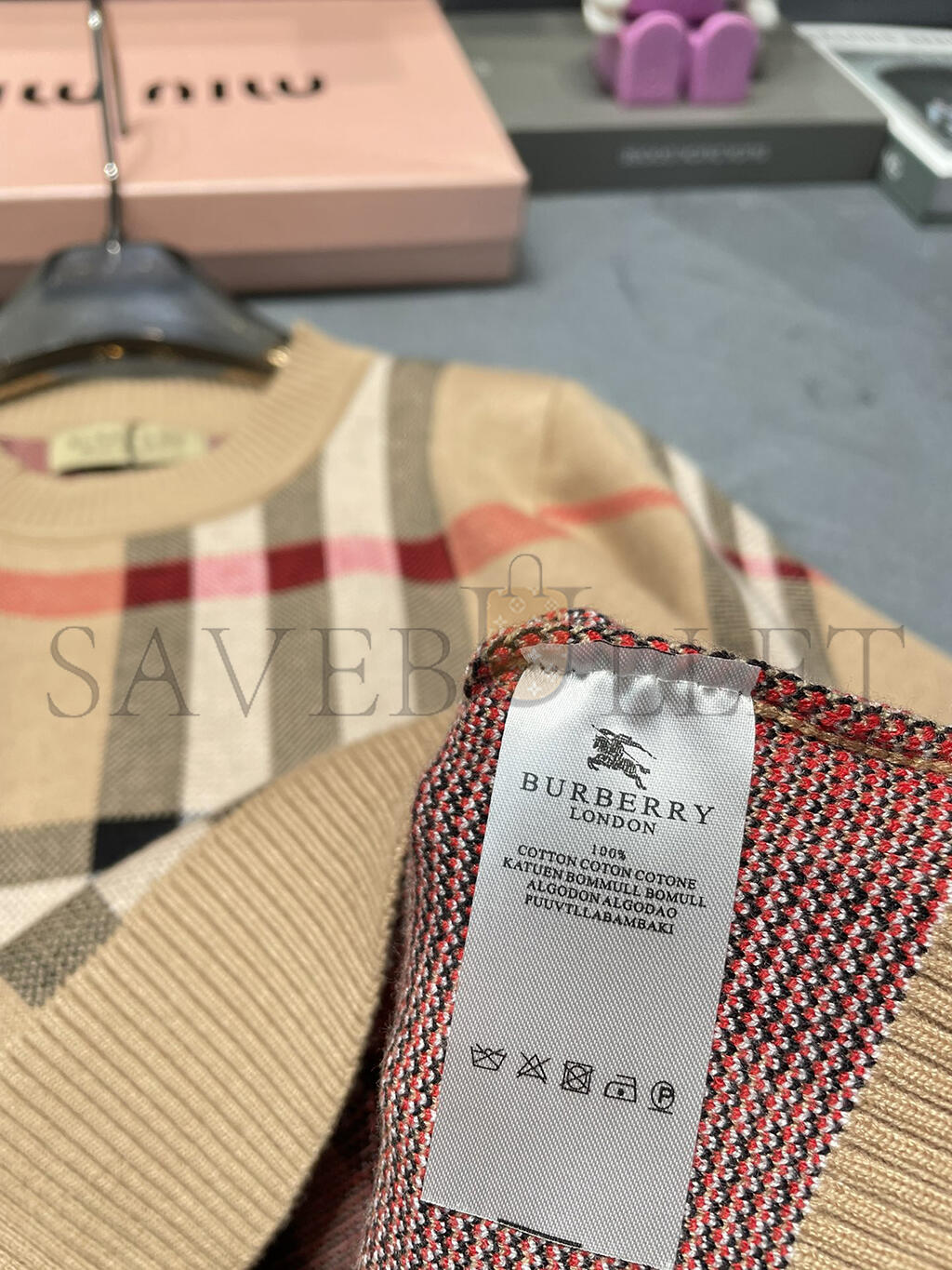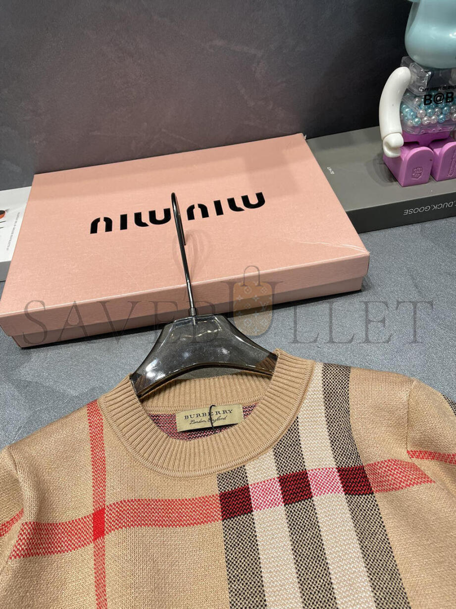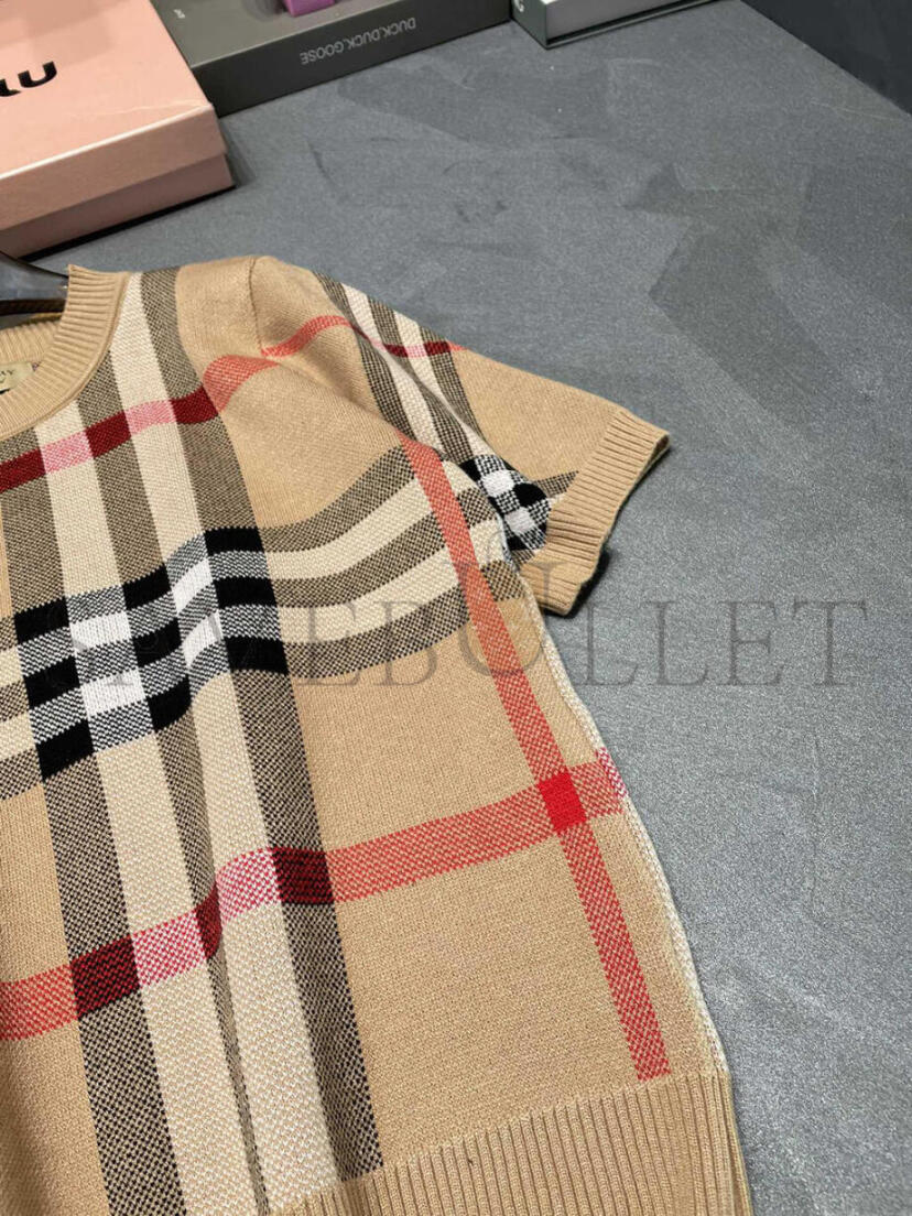BURBERRY ROUND NECK PLAID KNIT SHORT SLEEVE