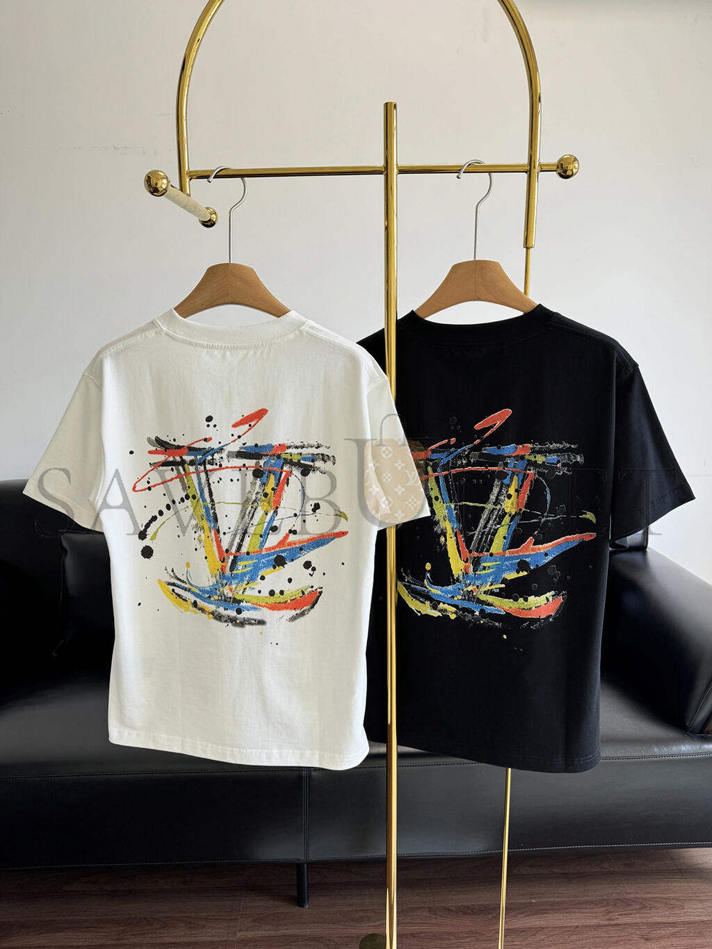 LOUIS VUITTON HAND-PAINTED LOGO PRINT SHORT-SLEEVED T
