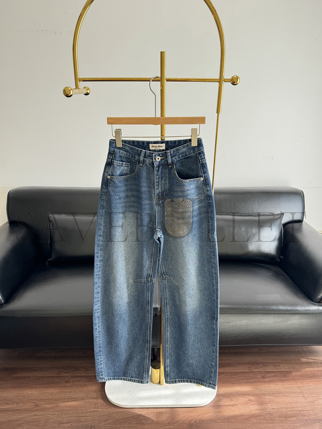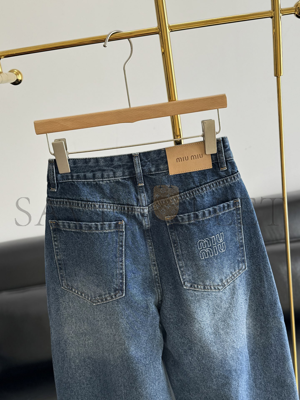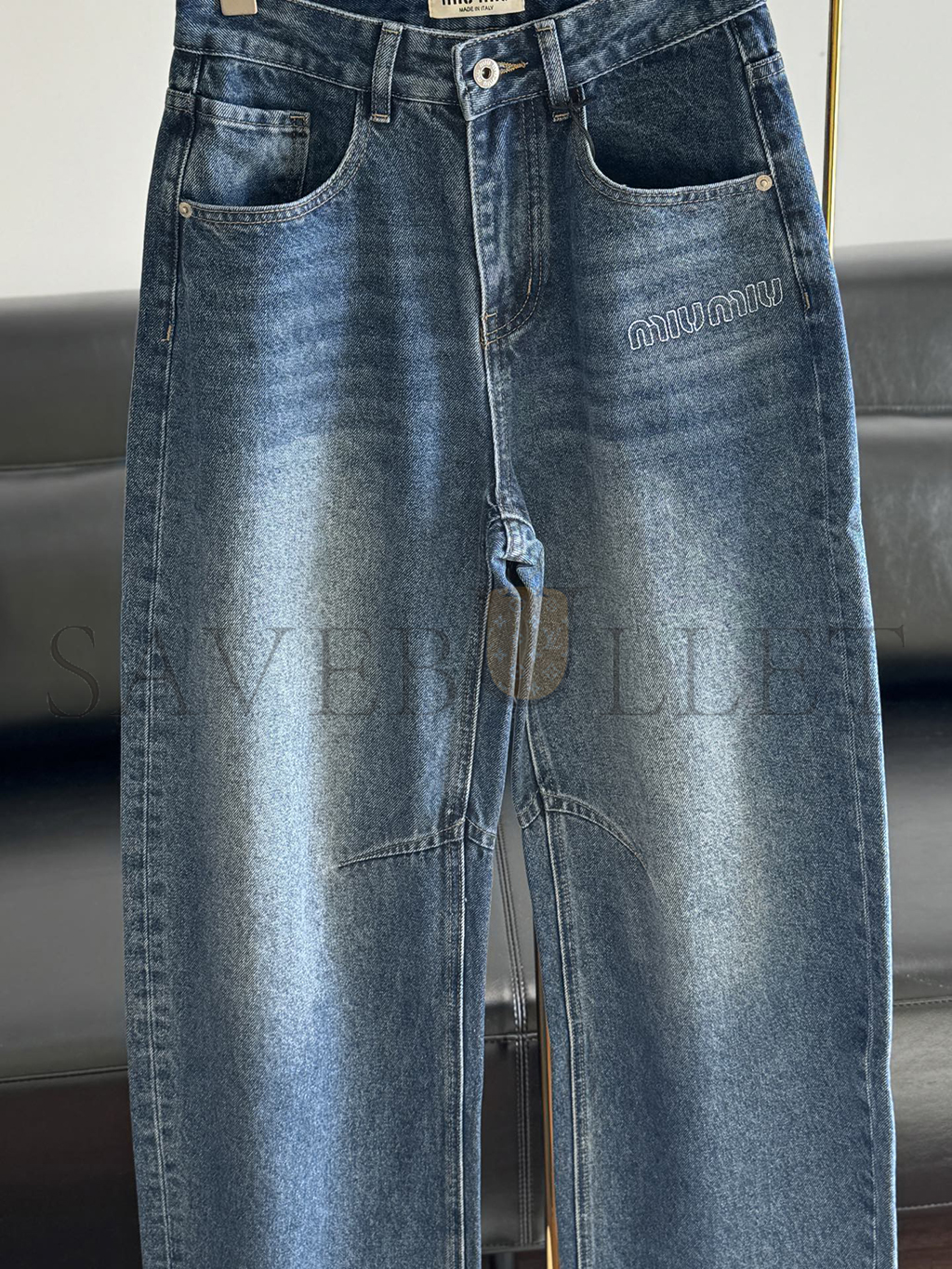 MIU MIU LETTER EMBROIDERED SCIMITAR JEANS