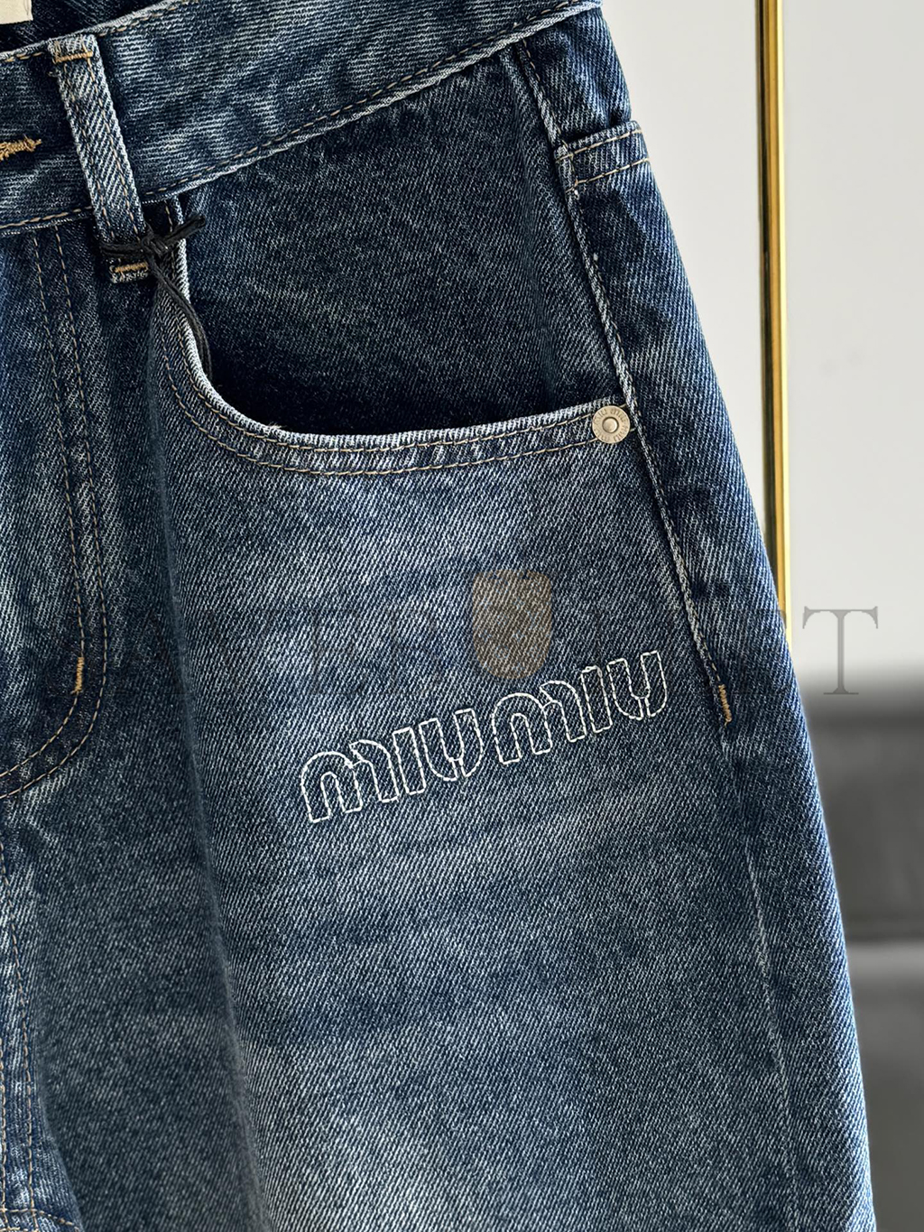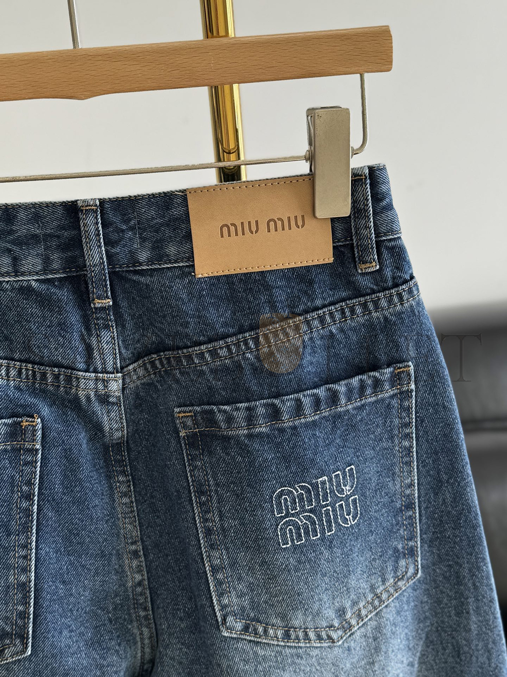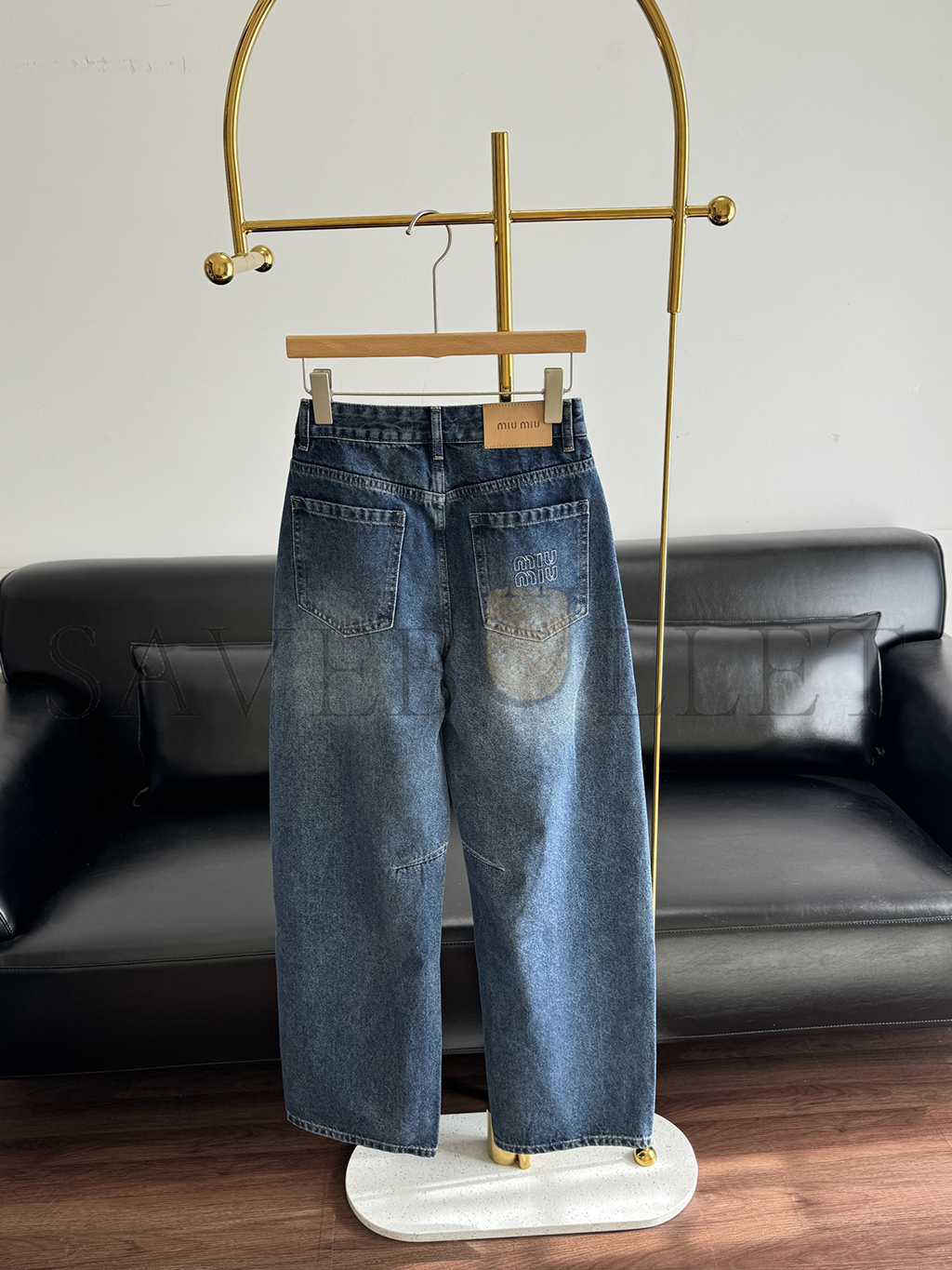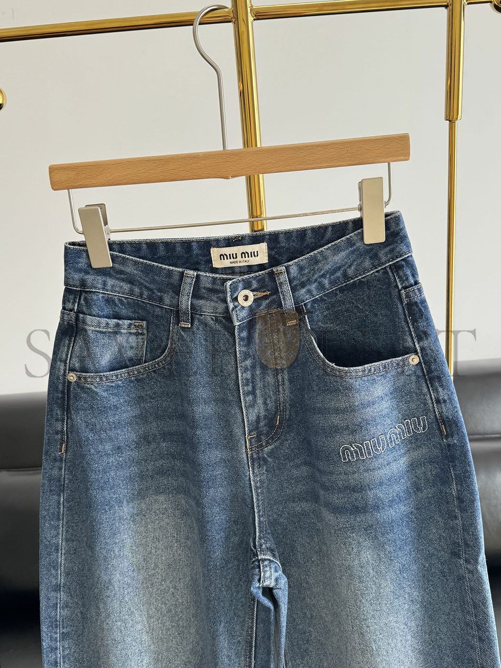 MIU MIU LETTER EMBROIDERED SCIMITAR JEANS