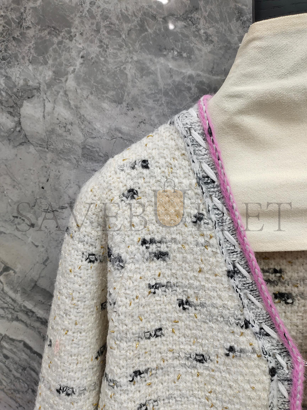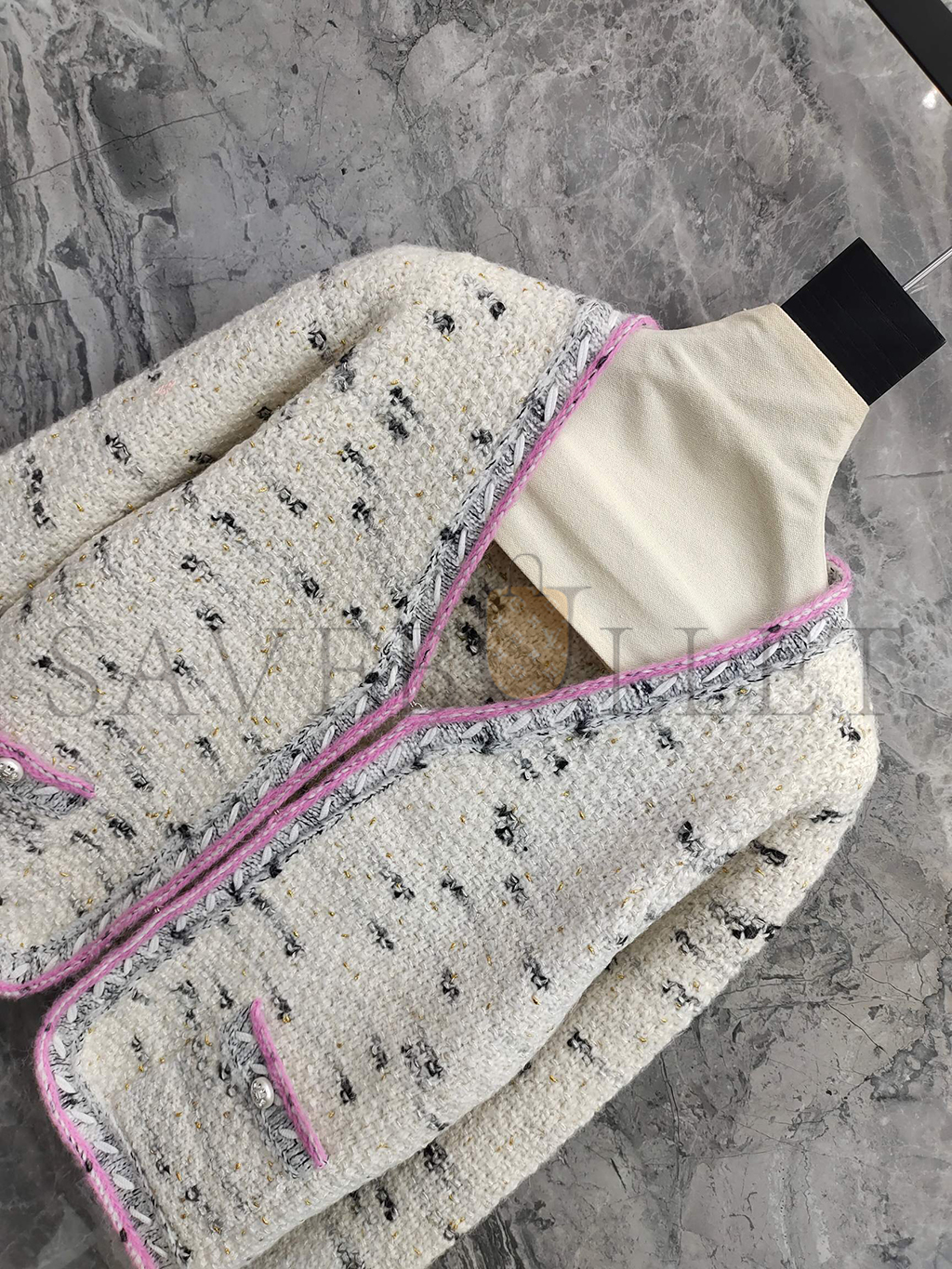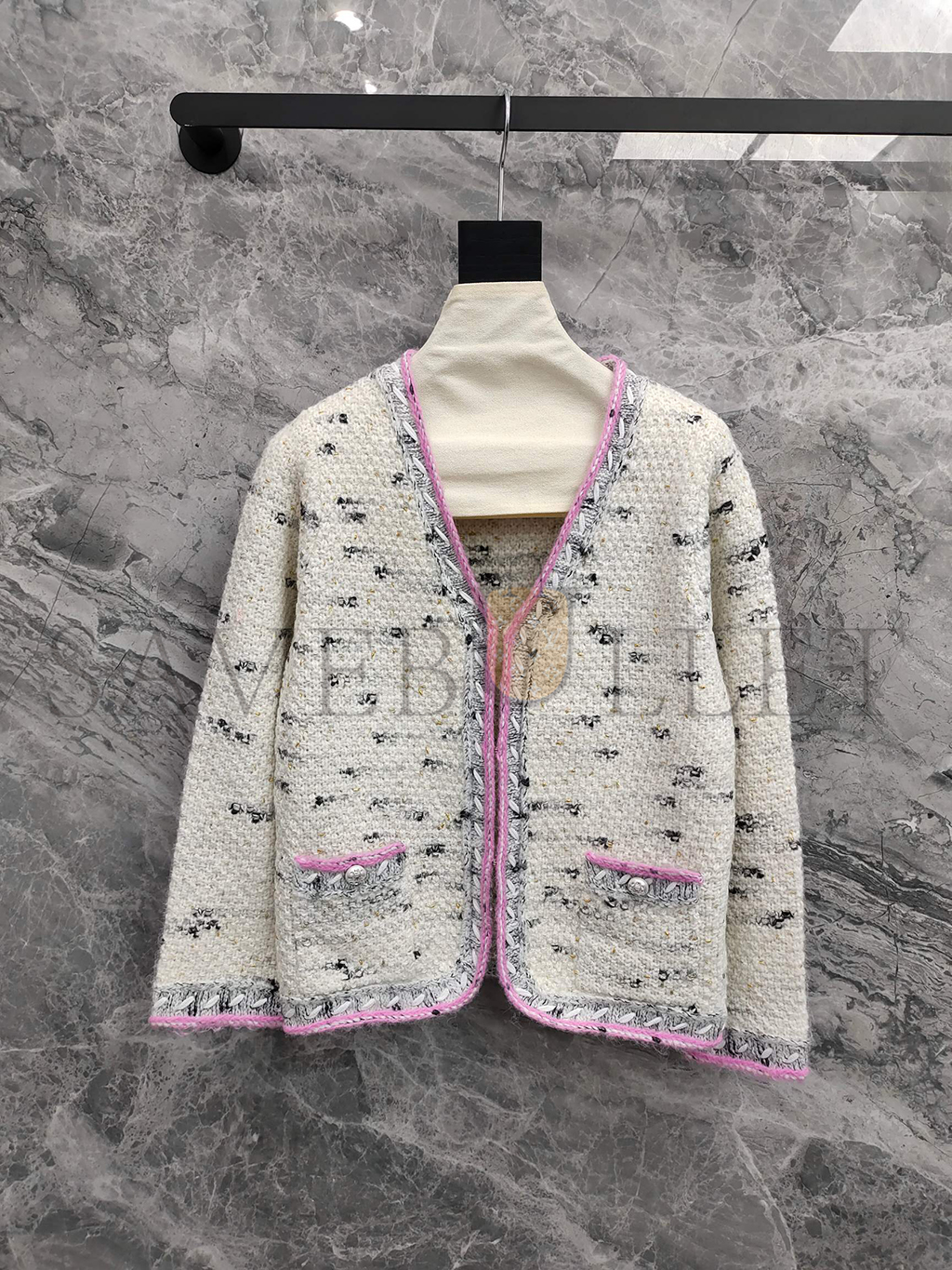 CHANEL WOMEN'S BRAID TRIM COLLARLESS POCKET JACKET