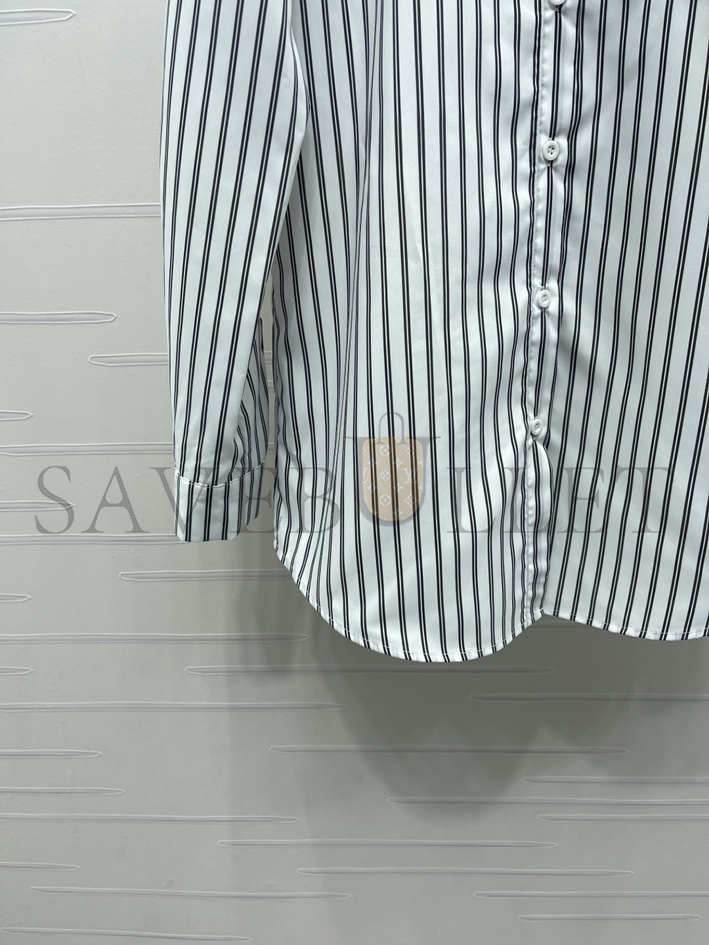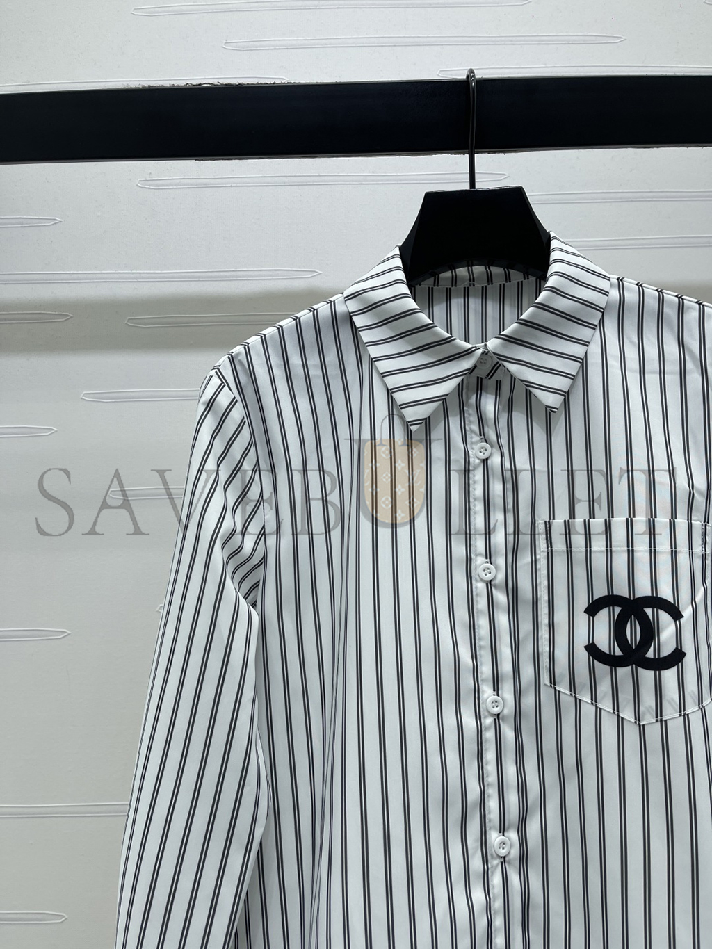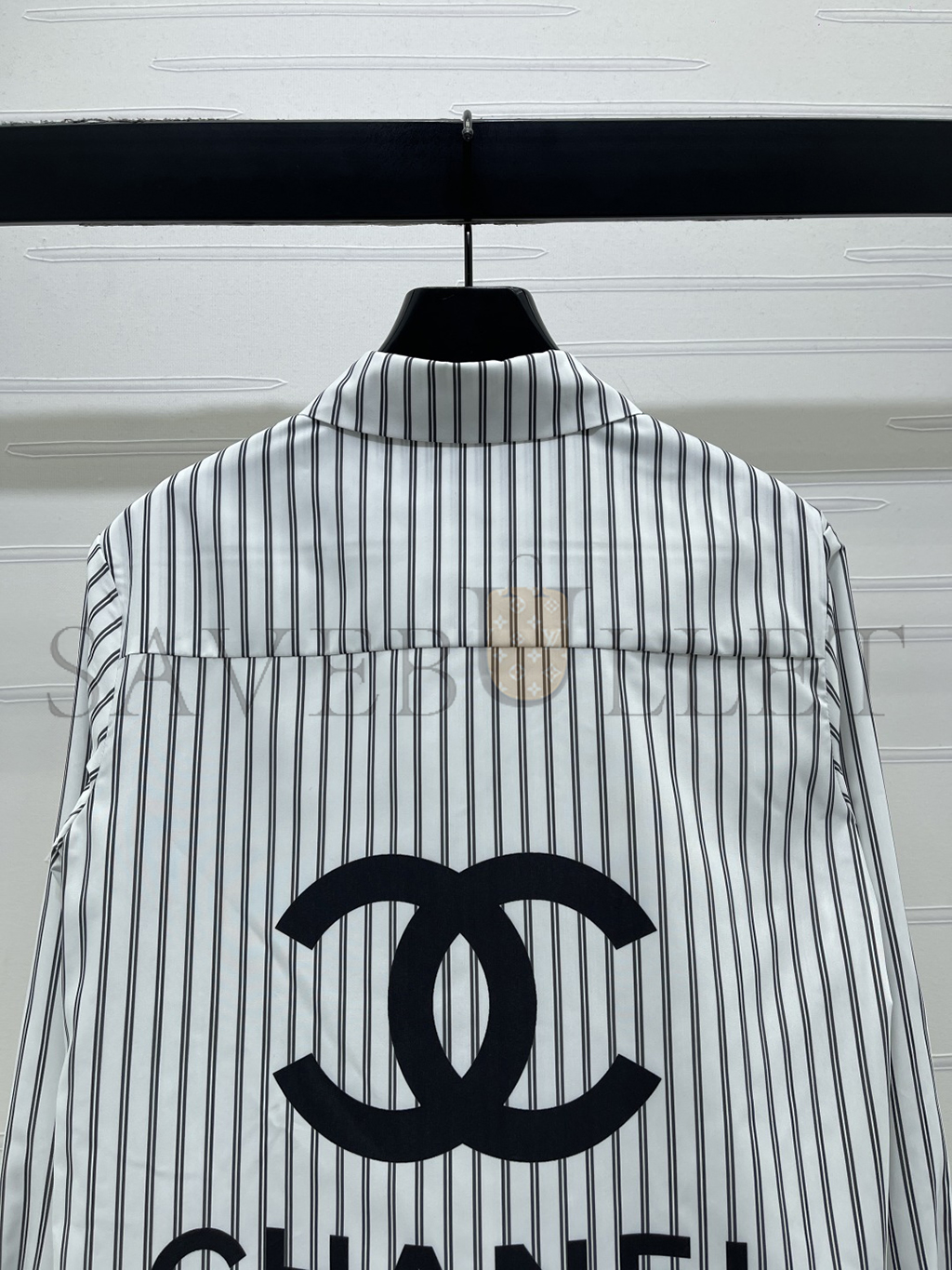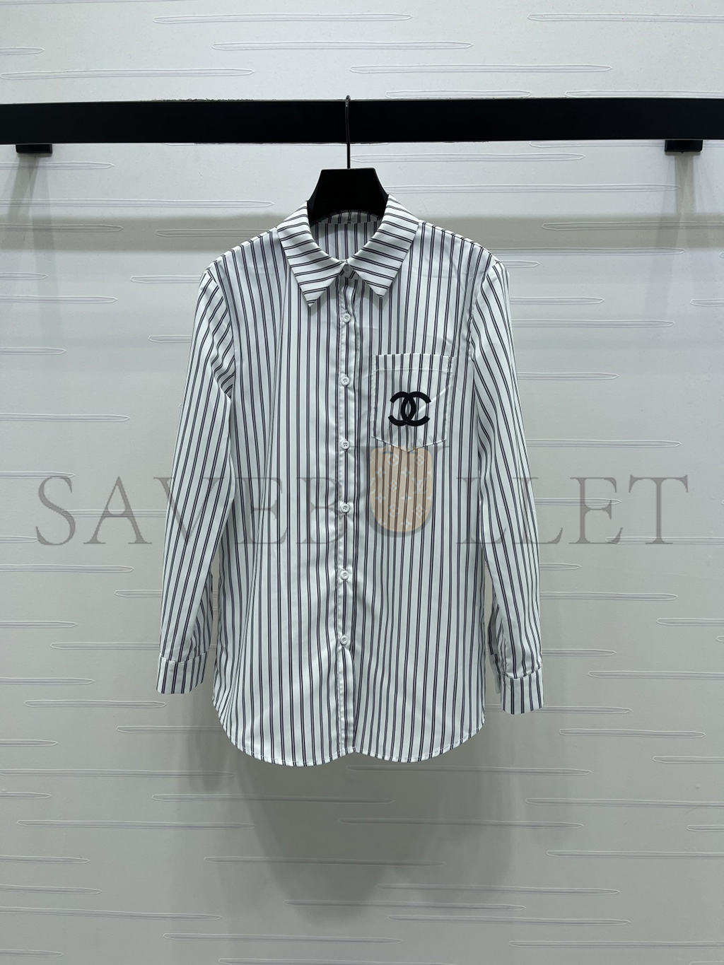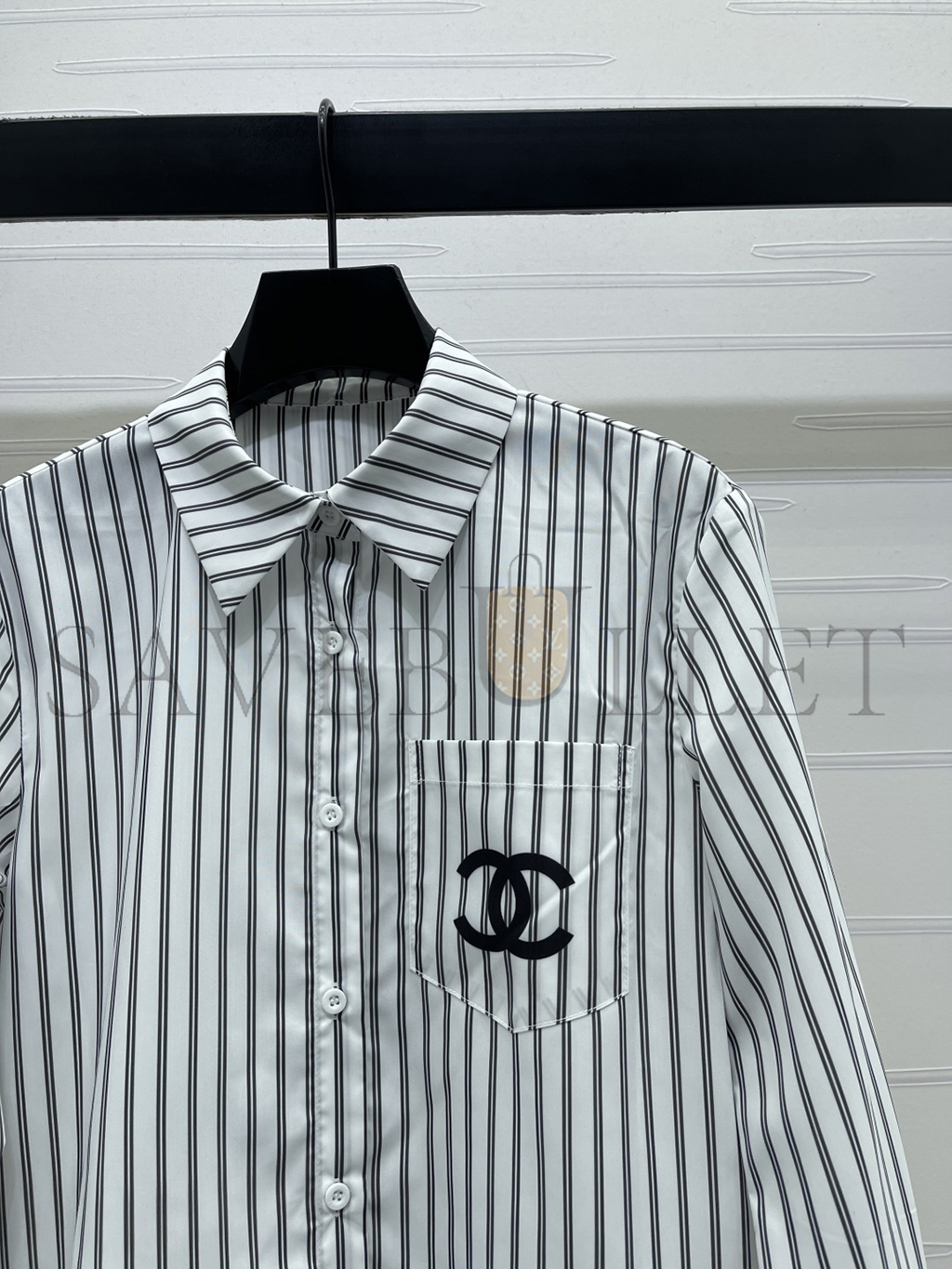 CHANEL STRIPED EMBROIDERED LOGO BLOUSE SHIRT