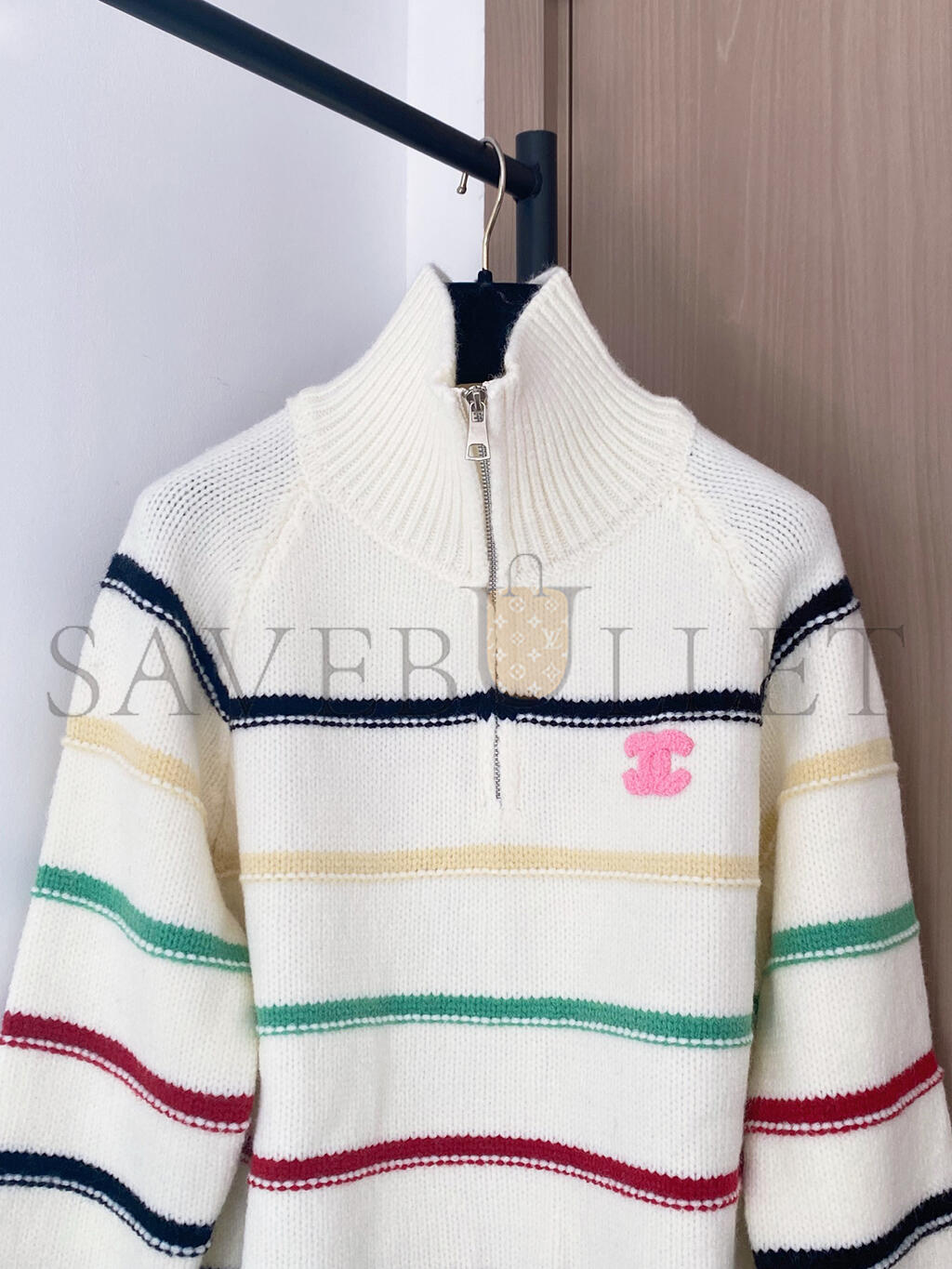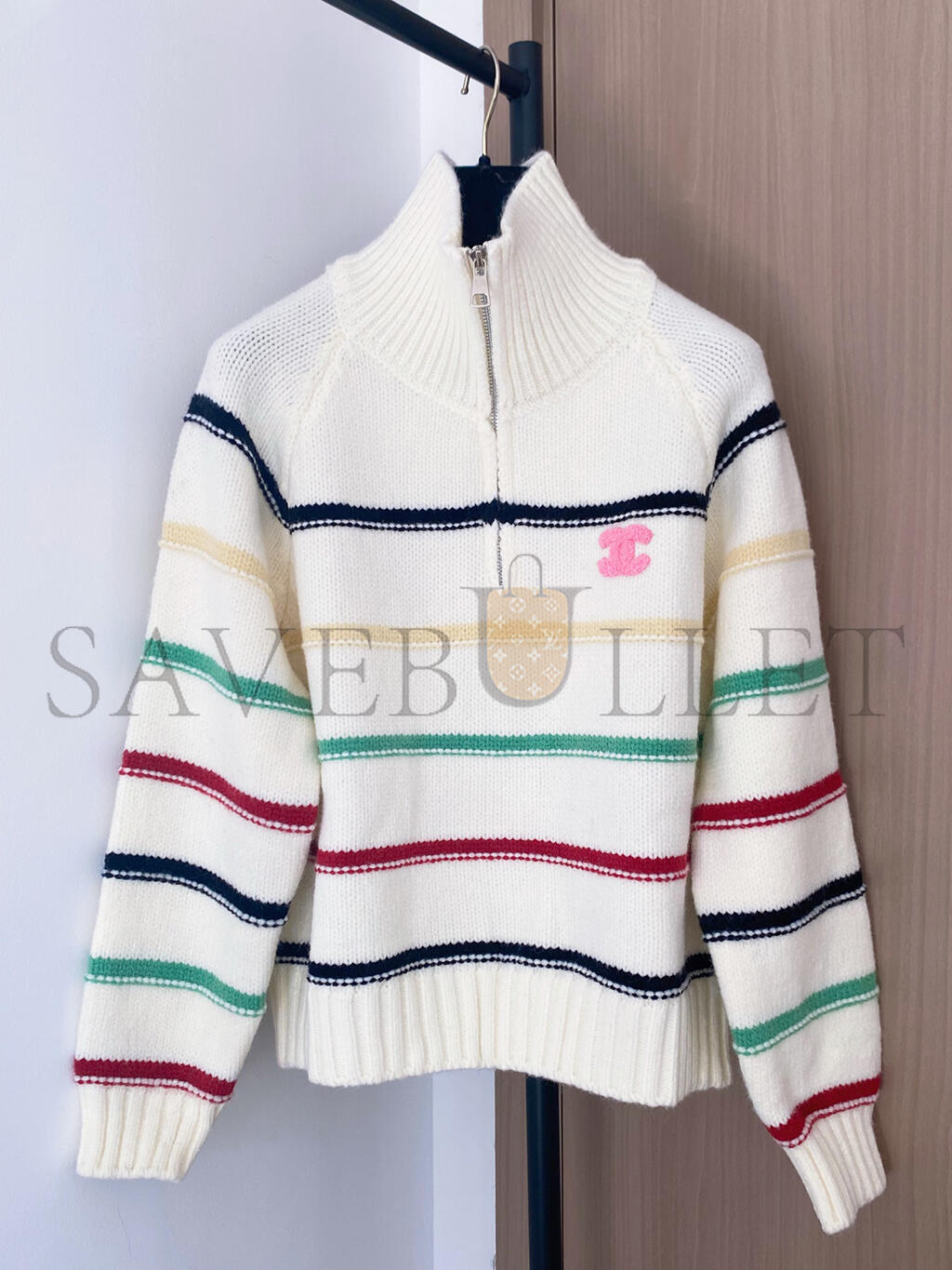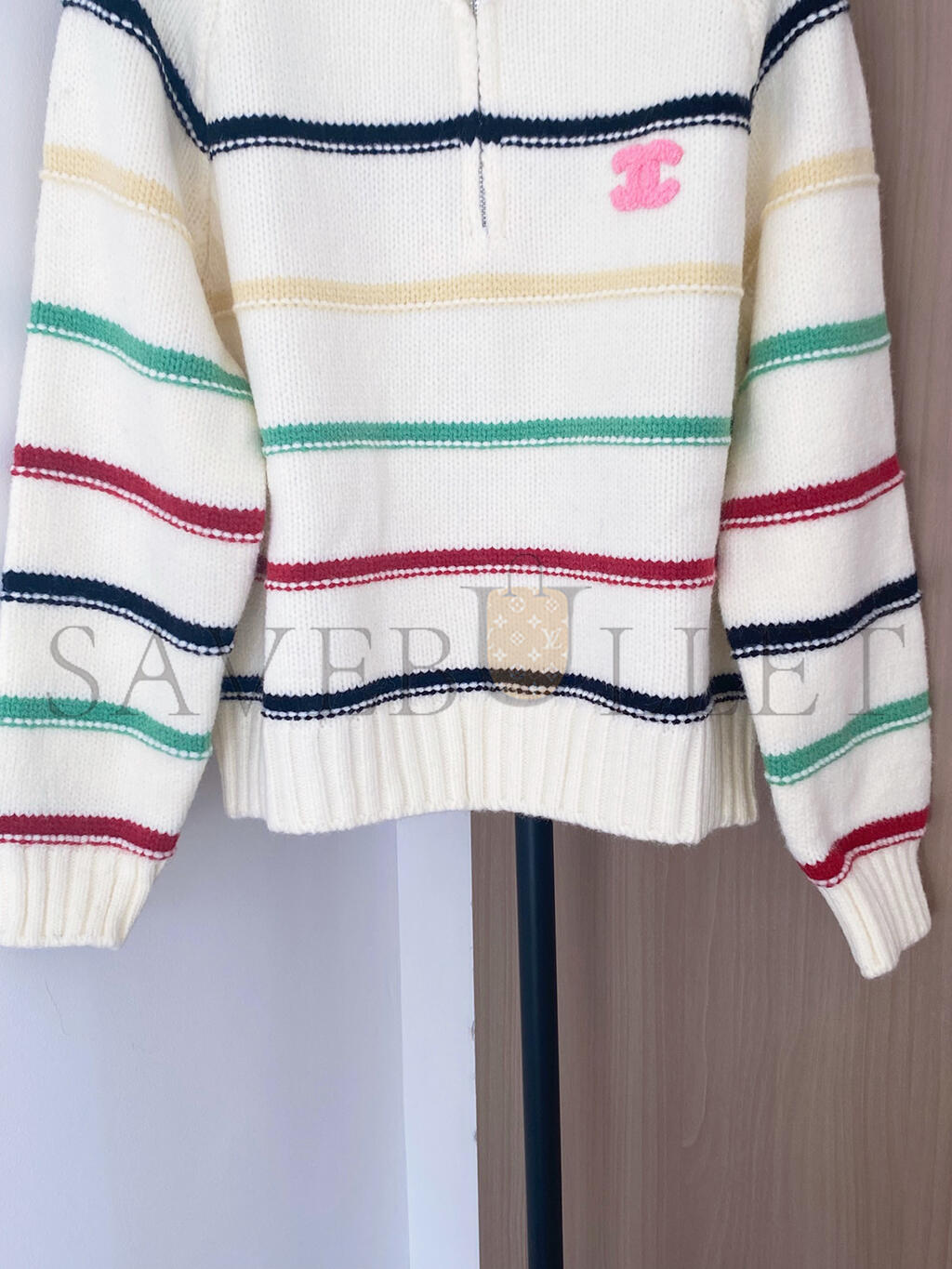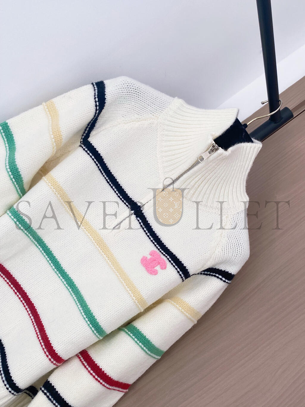 CHANEL COLORFUL STRIPED COLLARED ZIPPER KNIT LONG SLEEVE