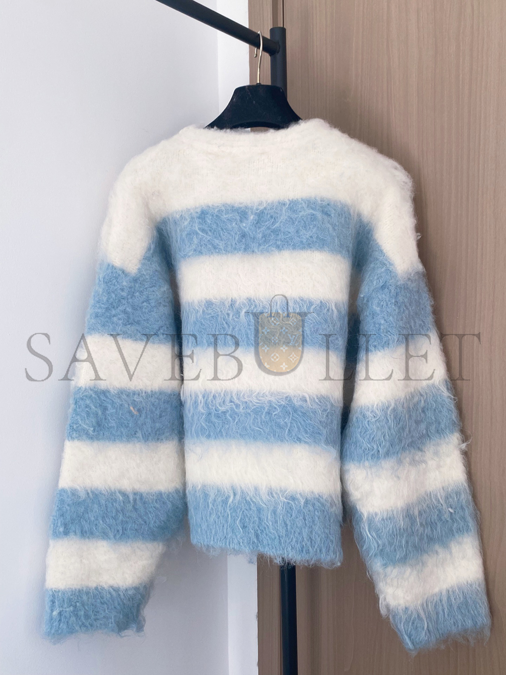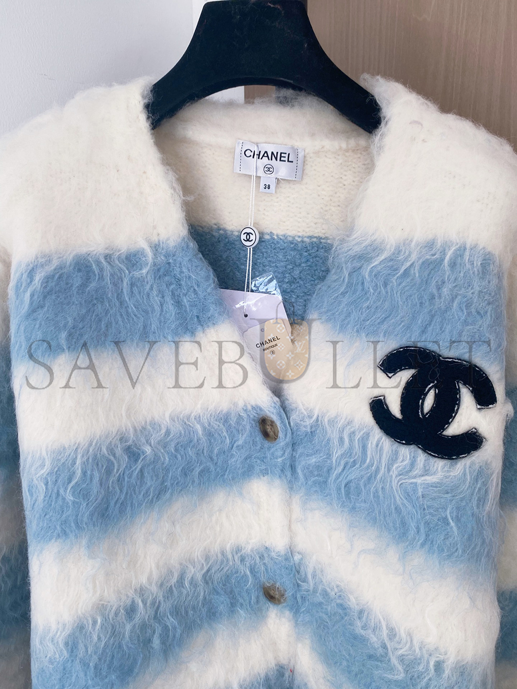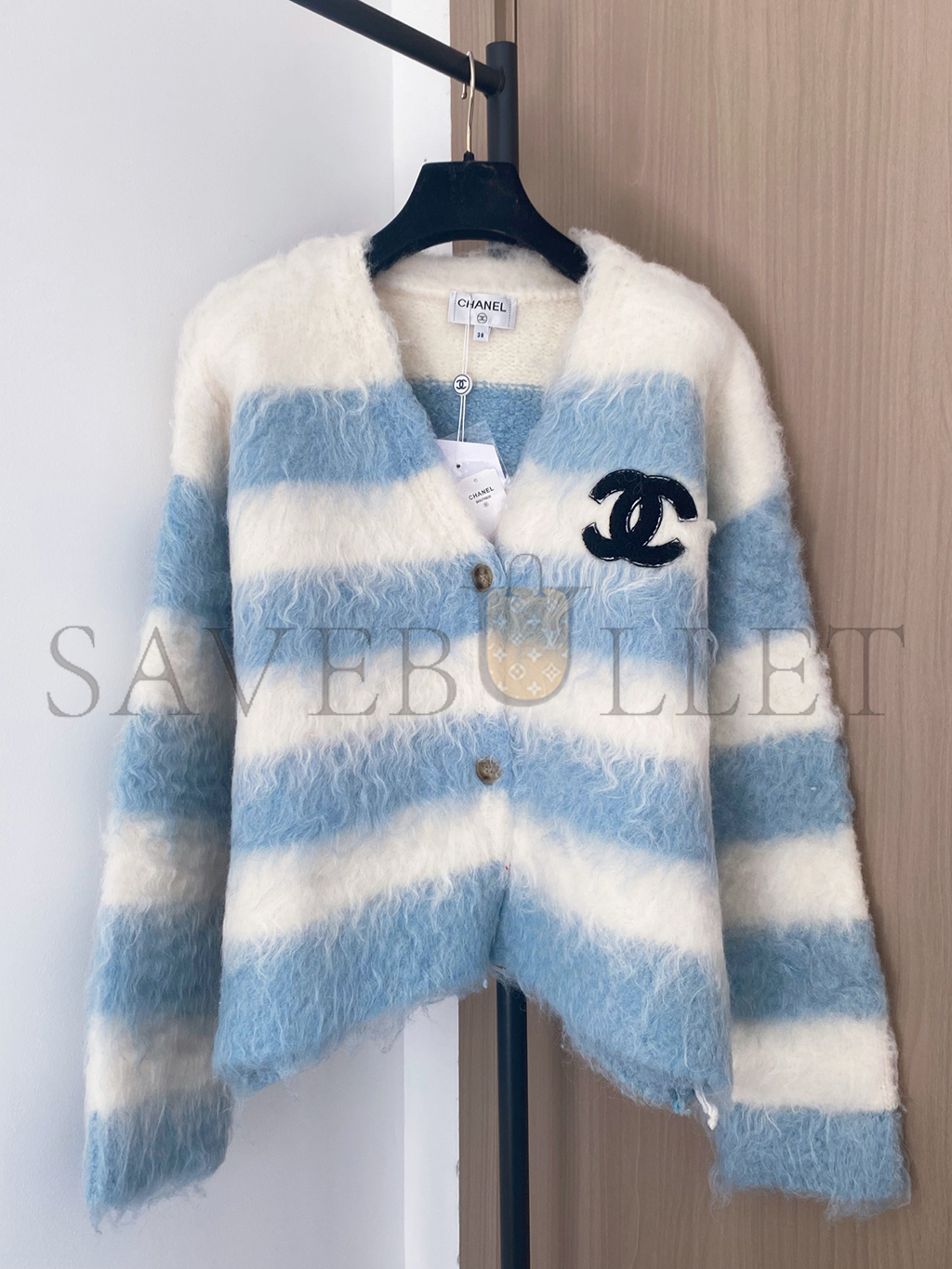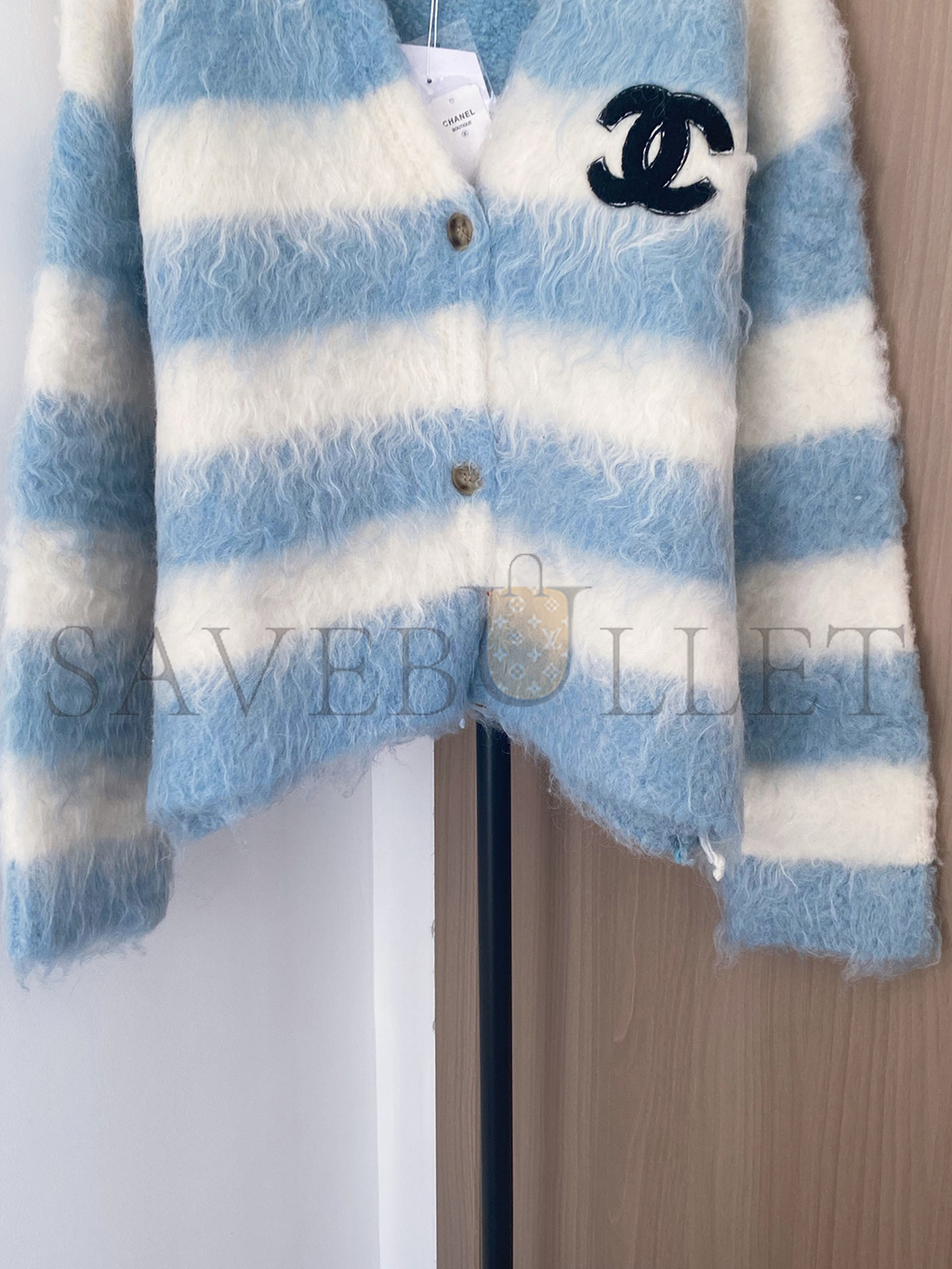 CHANEL MOHAIR V-NECK COLOR-BLOCKED STRIPED LONG-SLEEVED CARDIGAN