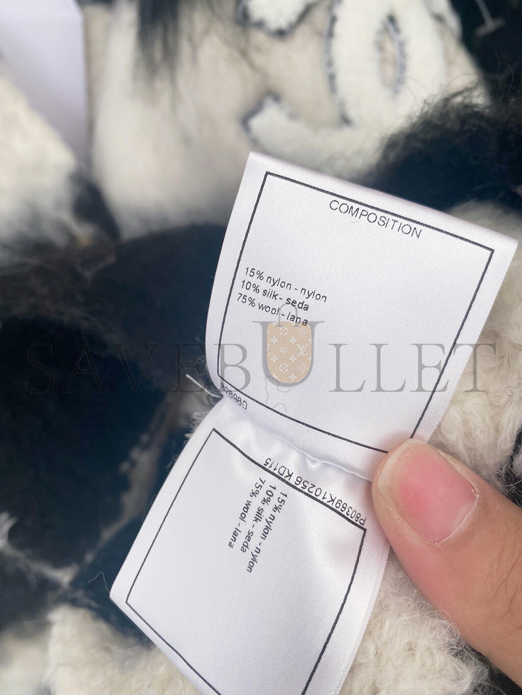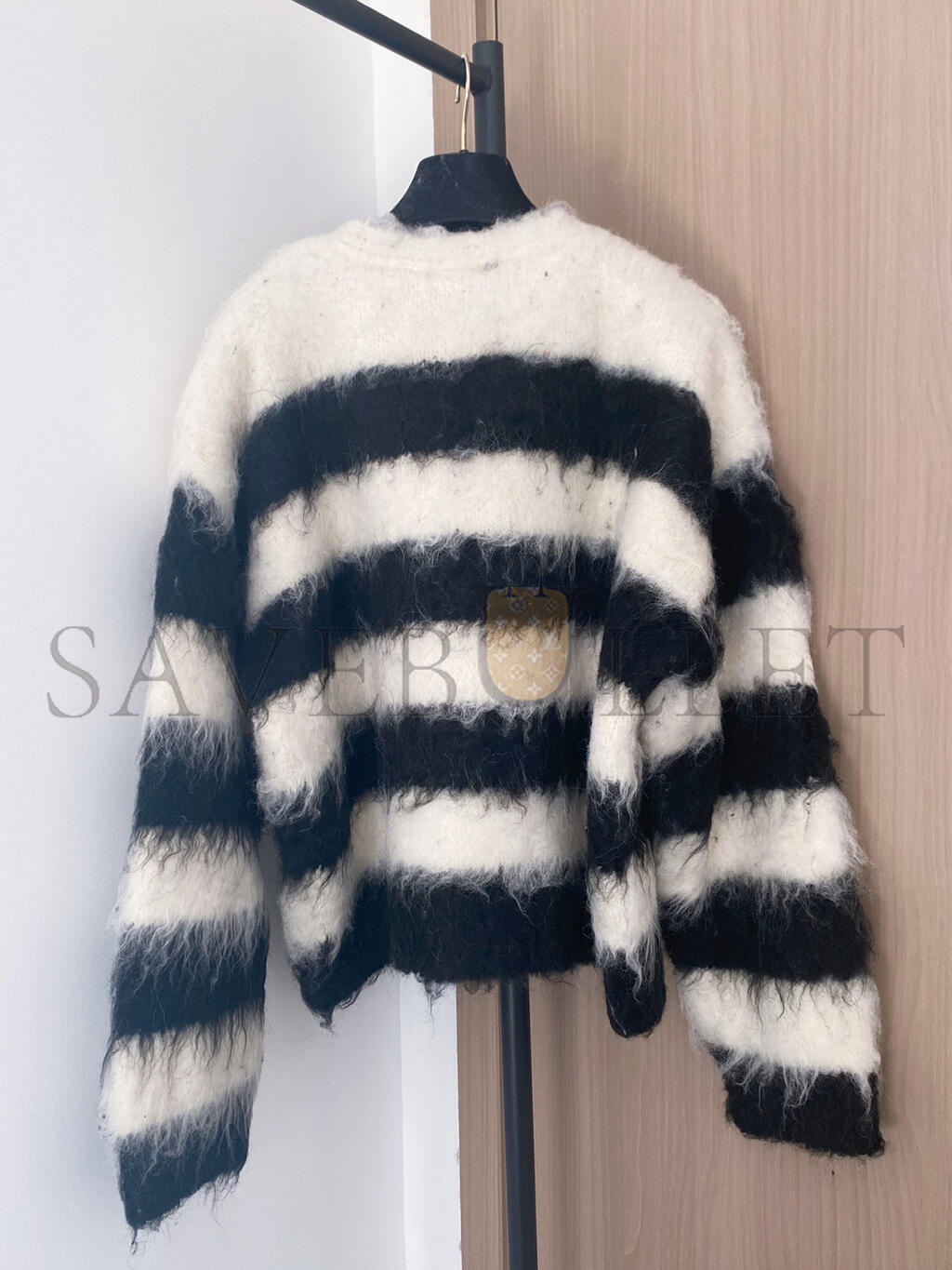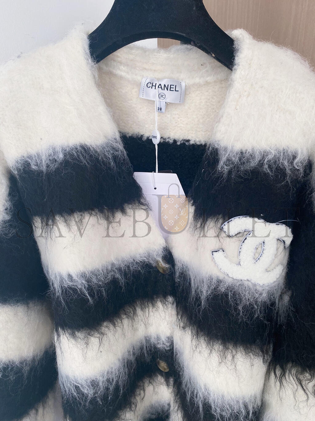 CHANEL MOHAIR V-NECK COLOR-BLOCKED STRIPED LONG-SLEEVED CARDIGAN