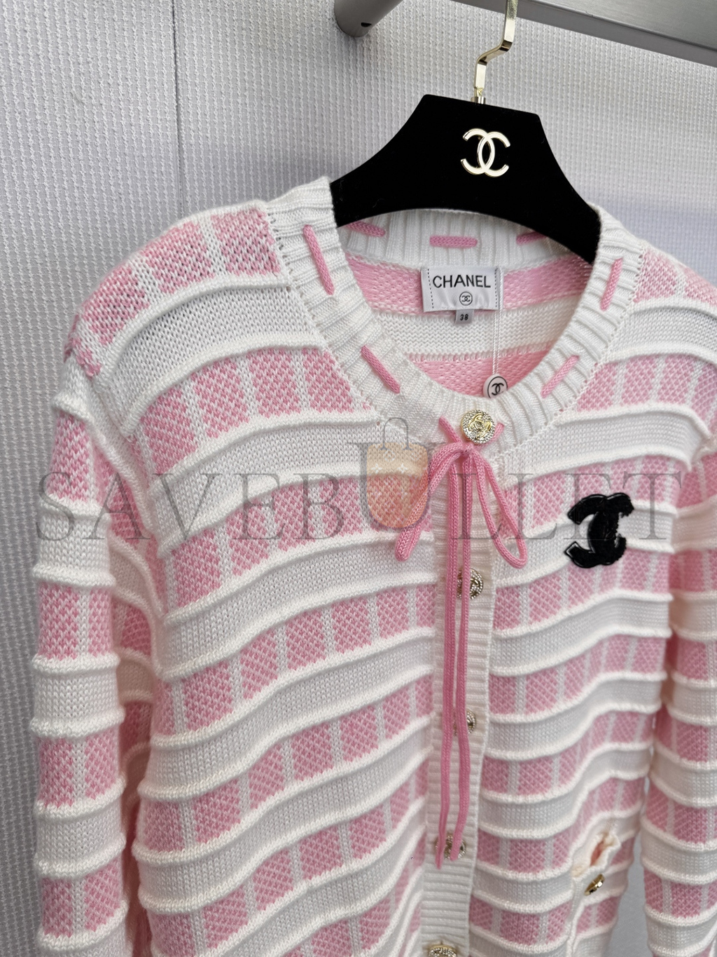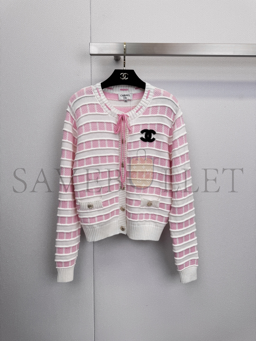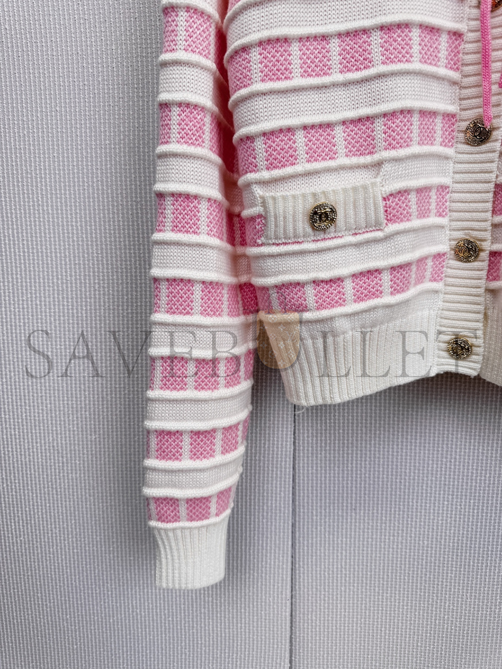 CHANEL WHITE STRIPED CARDIGAN