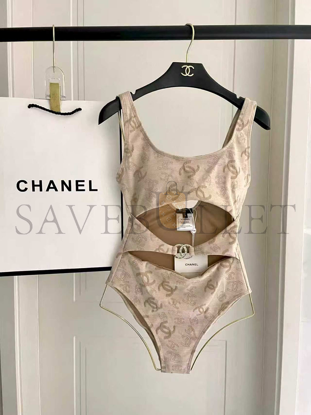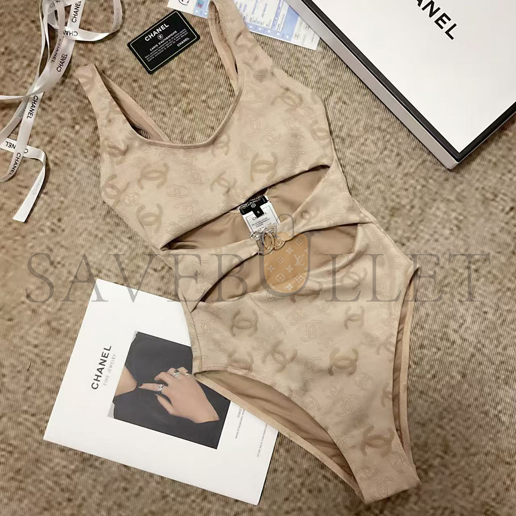 CHANEL OPENWORK KNIT ONE-PIECE SWIMSUIT