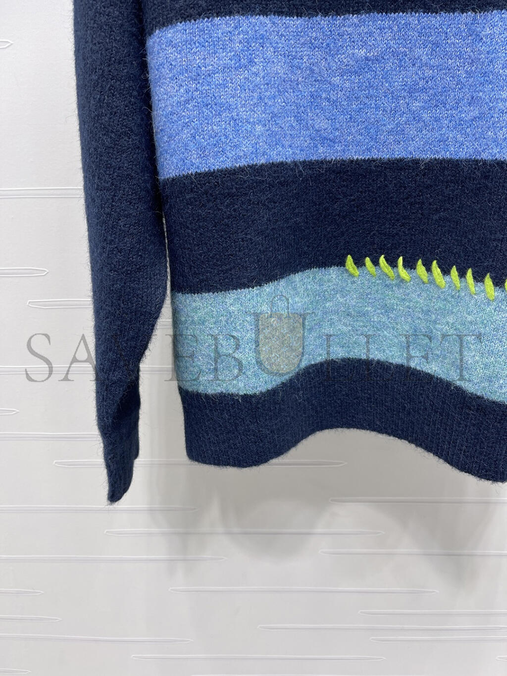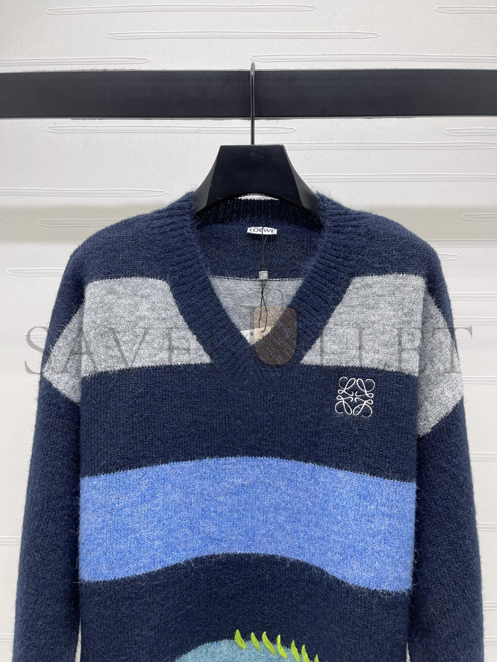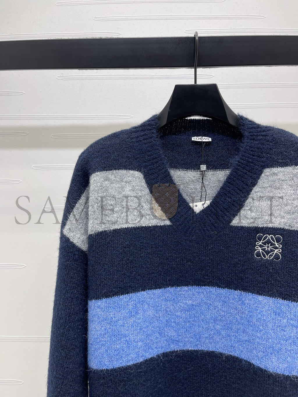LOEWE STRIPED V-NECK KNIT SWEATER