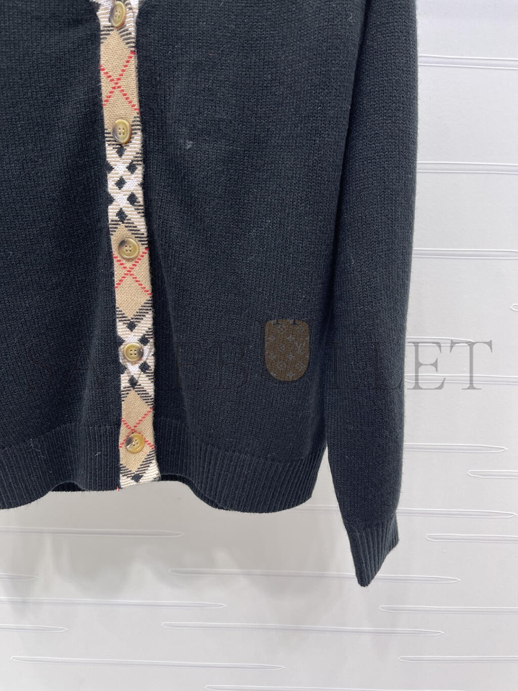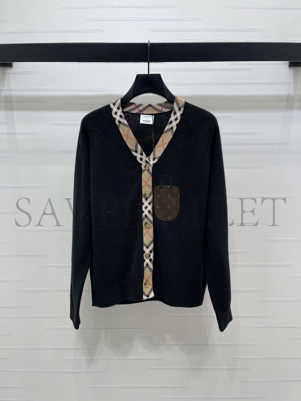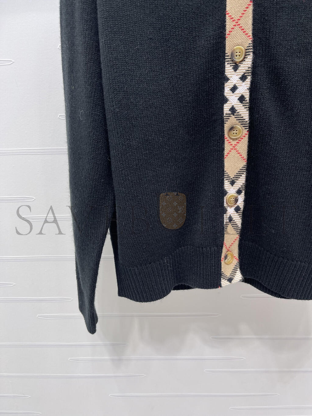BURBERRY CHECKERED TRIM WOOL CARDIGAN